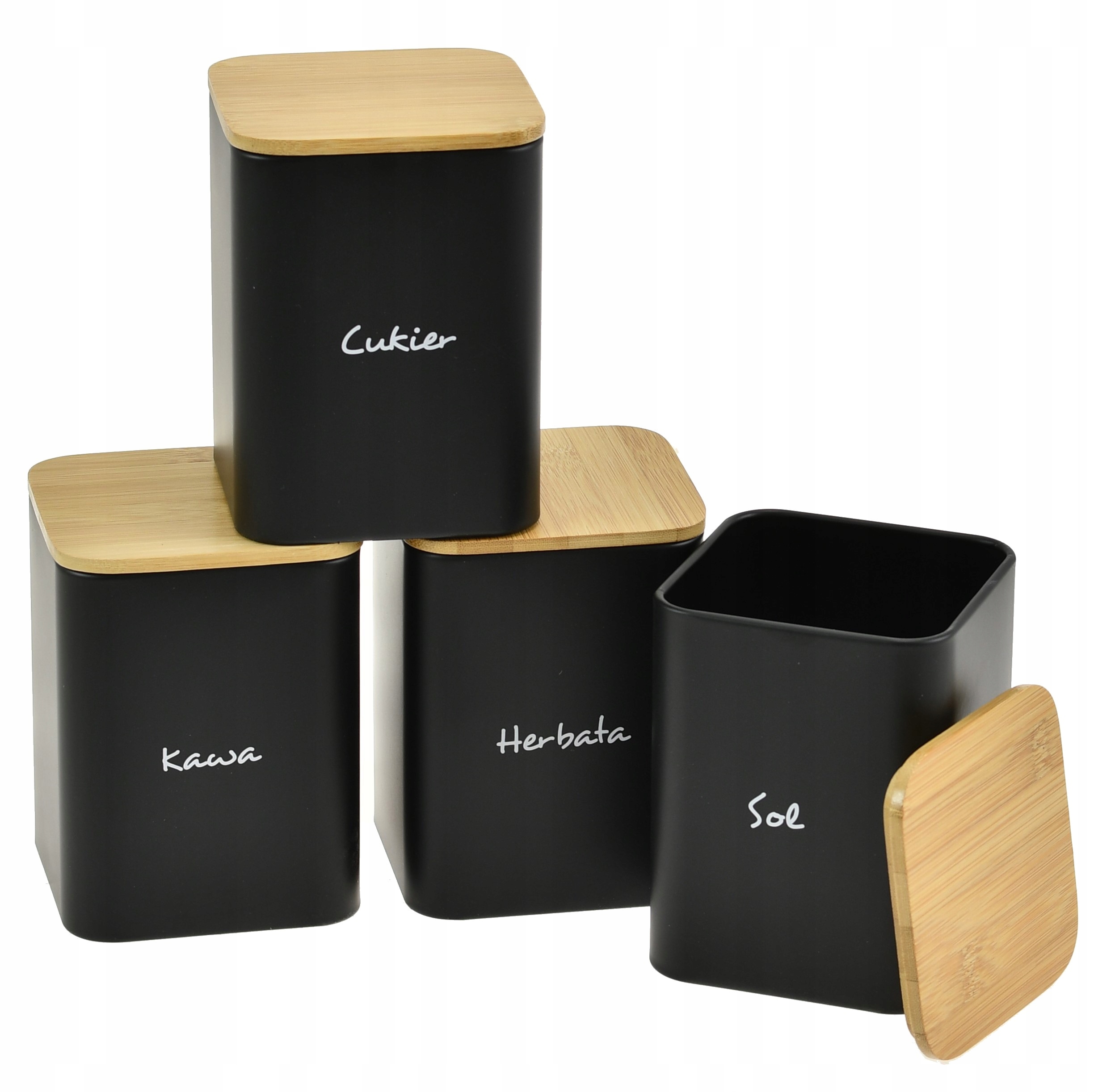 Контейнери з Написом КАВА ЧАЙ ЦУКОР СІЛЬ Набір з 3 контейнерів ЧОРНИЙ МАТ