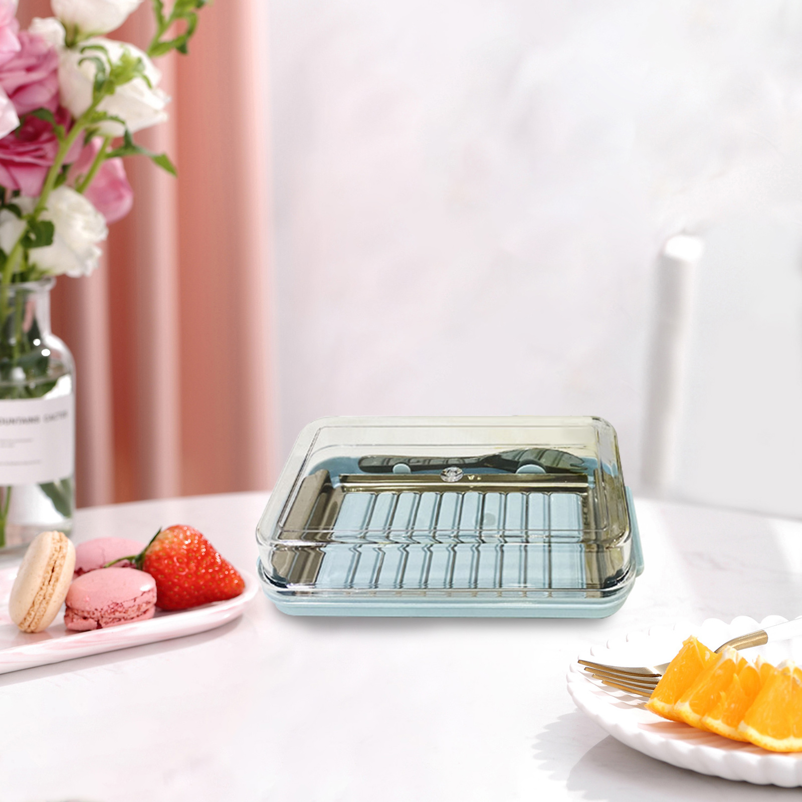 Контейнер для резки масла, прямоугольный контейнер для сыра, герметичный кухонный инструмент, синее дно