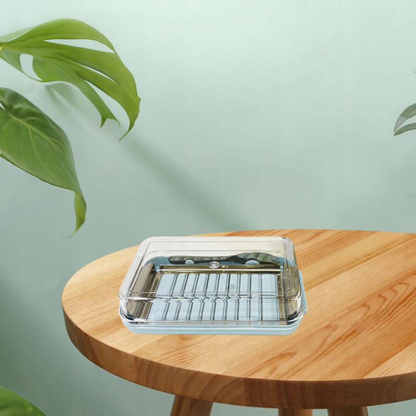 Контейнерная коробка с крышкой Прямоугольный прозрачный контейнер для хранения сыра с синим дном