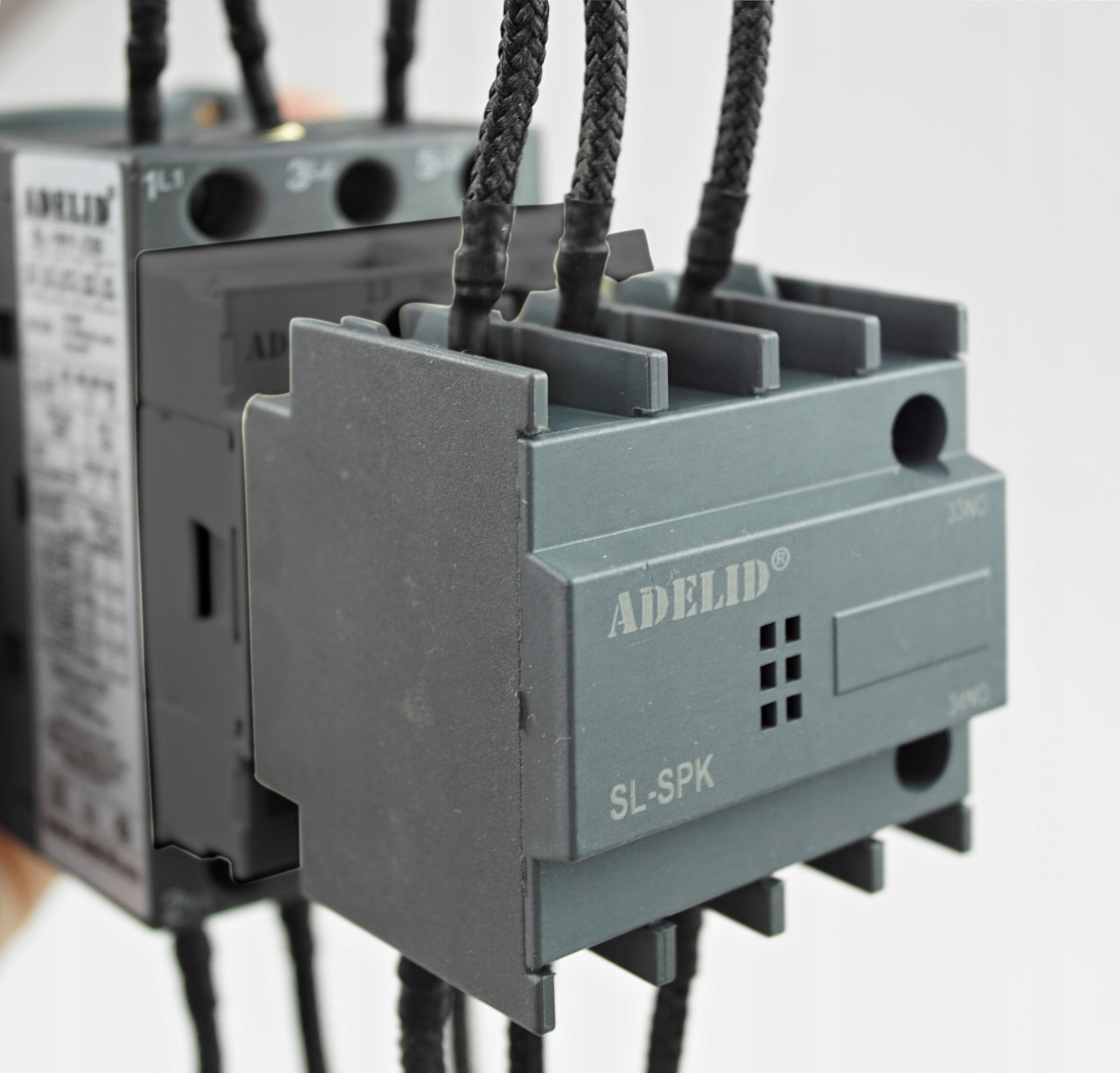 ✅ Контатор бренда Adelid-это 3-х верховой контактор серии SL+SPK для включения конденсаторов с пассивной мощностью до 25 кВар и номинальным током до 32A.