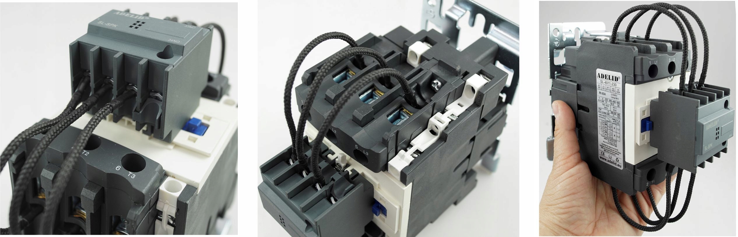 ✅ Контатор бренда Adelid-это контактор с 3 бегунами серии SL+SPK для включения конденсаторов с пассивной мощностью до 30 кВар и номинальным током до 40А.
