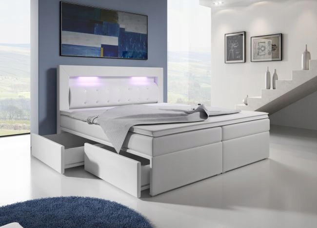 1 кровать MILANO размером 180/200 с тремя матрасами и светодиодным освещением.