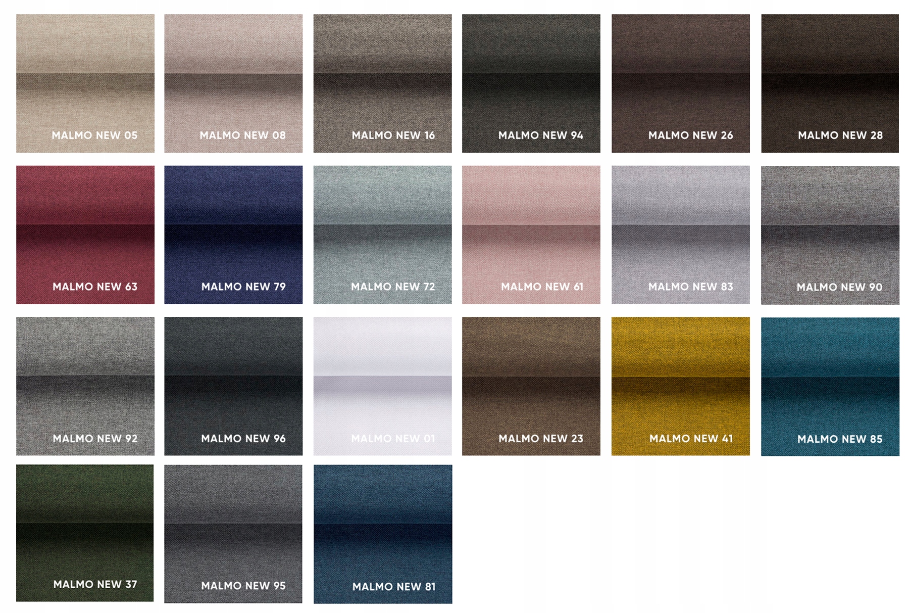 MALMO NEW – ткань, относящаяся к группе плетеных, известных своей прочностью. Материал обладает высокой устойчивостью к истиранию во время сидения. Ткань также устойчива к скатываниям и обесцвечиванию под воздействием искусственного света. Он безопасен для здоровья, поскольку не содержит вредных веществ.