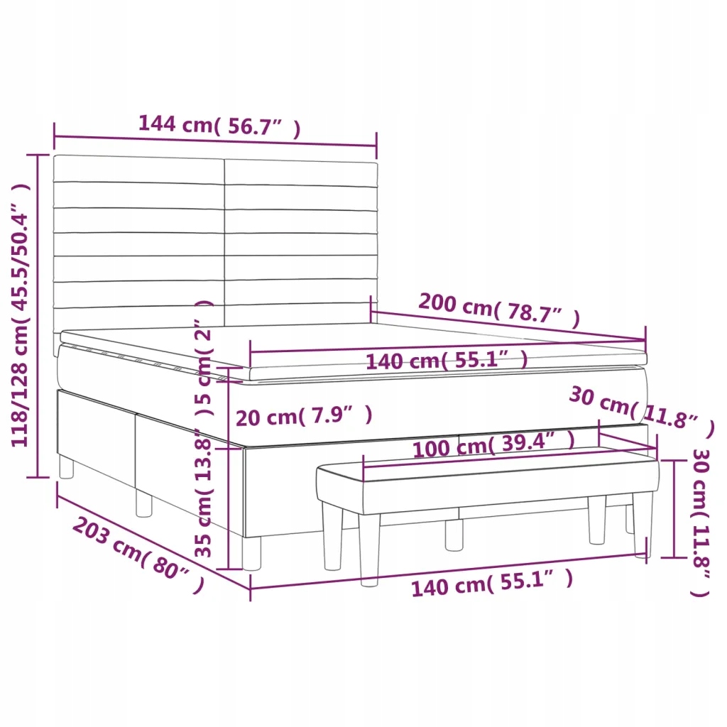 Континентальная кровать с матрасом, темно-синий, 140х200 см