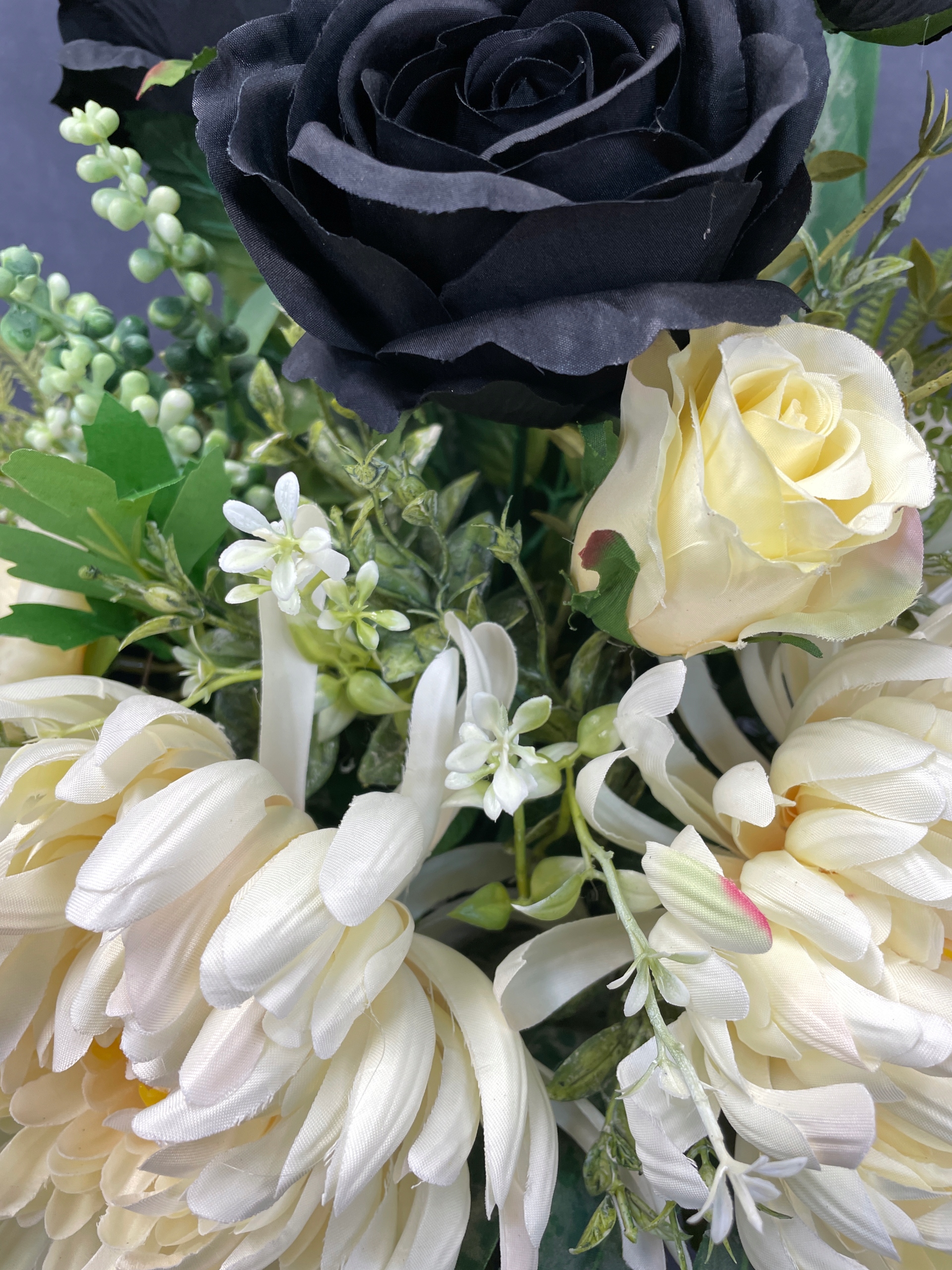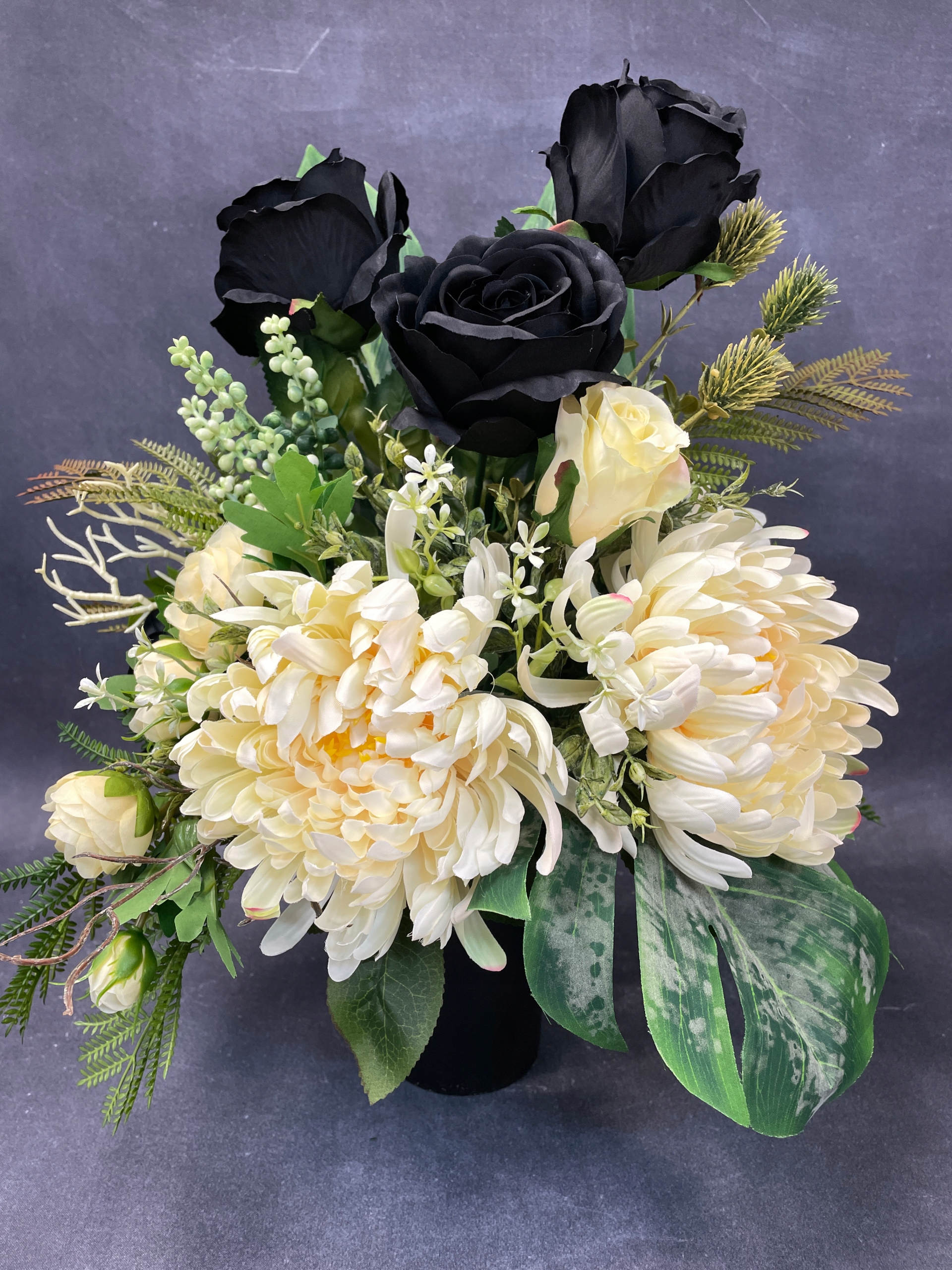 - черные розы - чрезвычайно достойные и элегантные, символизирующие прощание, сожаление и отражение на прохождении. Их присутствие придает букеру серьезный, но также величественный характер.