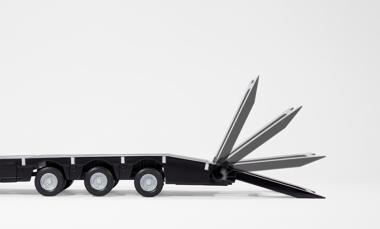 Транспортировка особенно тяжелых нагрузок, таких как строительные машины, тракторы или части мостов, возможна только с использованием специального полусвятника с низким уровнем ресурса. Евро -эйро -низко -юнгарные полуатлеты считаются наиболее устойчивыми на рынке. Благодаря гидравлической системе рулевого управления эти тяжелые специальные переносчики также легко маневрировать. Полуотборник имеет форму глубокой загрузки, а сзади есть электронная рампа для легкой загрузки тяжелой нагрузки. Его шасси сделано из металла, а корпус из прочного пластика. Ноги поддержки могут быть вытянуты вручную, чтобы обеспечить дополнительную стабильность во время остановки. В задней части полуатлета есть четыре светодиода: два красных дорожных фонаря и два индикатора направления. Низкий полупроводник подключен к соответствующему трактору Bluetooth из серии управления Siku, такого как грузовик или трактор, используя кабель с разъемом. Это, в свою очередь, можно легко управлять с помощью приложения управления SIKU или соответствующего модуля дистанционного управления.