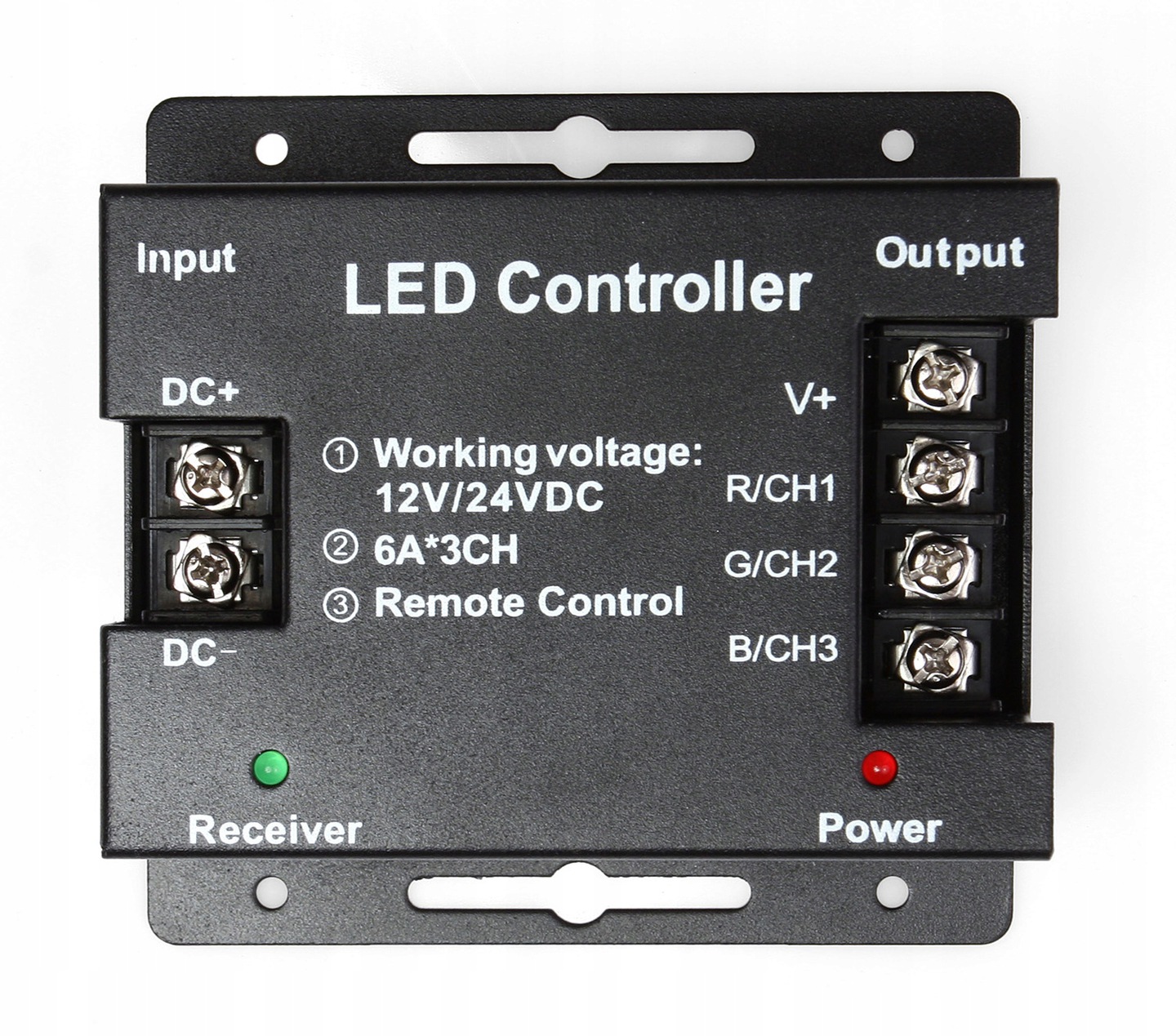 ✅ Установка контроллера очень проста - подключаем блок питания 230В и затем подключаем выходящее напряжение 12В к контроллеру (вход 12В), а к другому рукой подключаем клеммы RGB+ к светодиодной ленте.