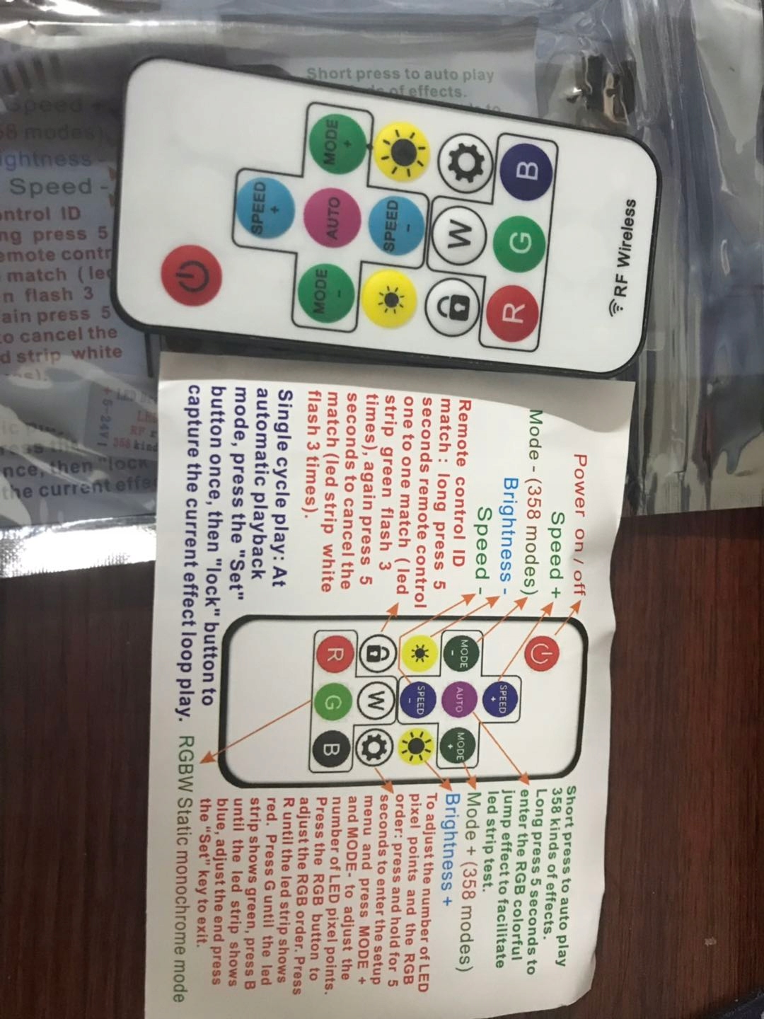 - Функции контроллера:Возможность управления с помощью 358 режимов освещения, изменения цветов, включения/выключения, настройки яркости и скорости освещения.