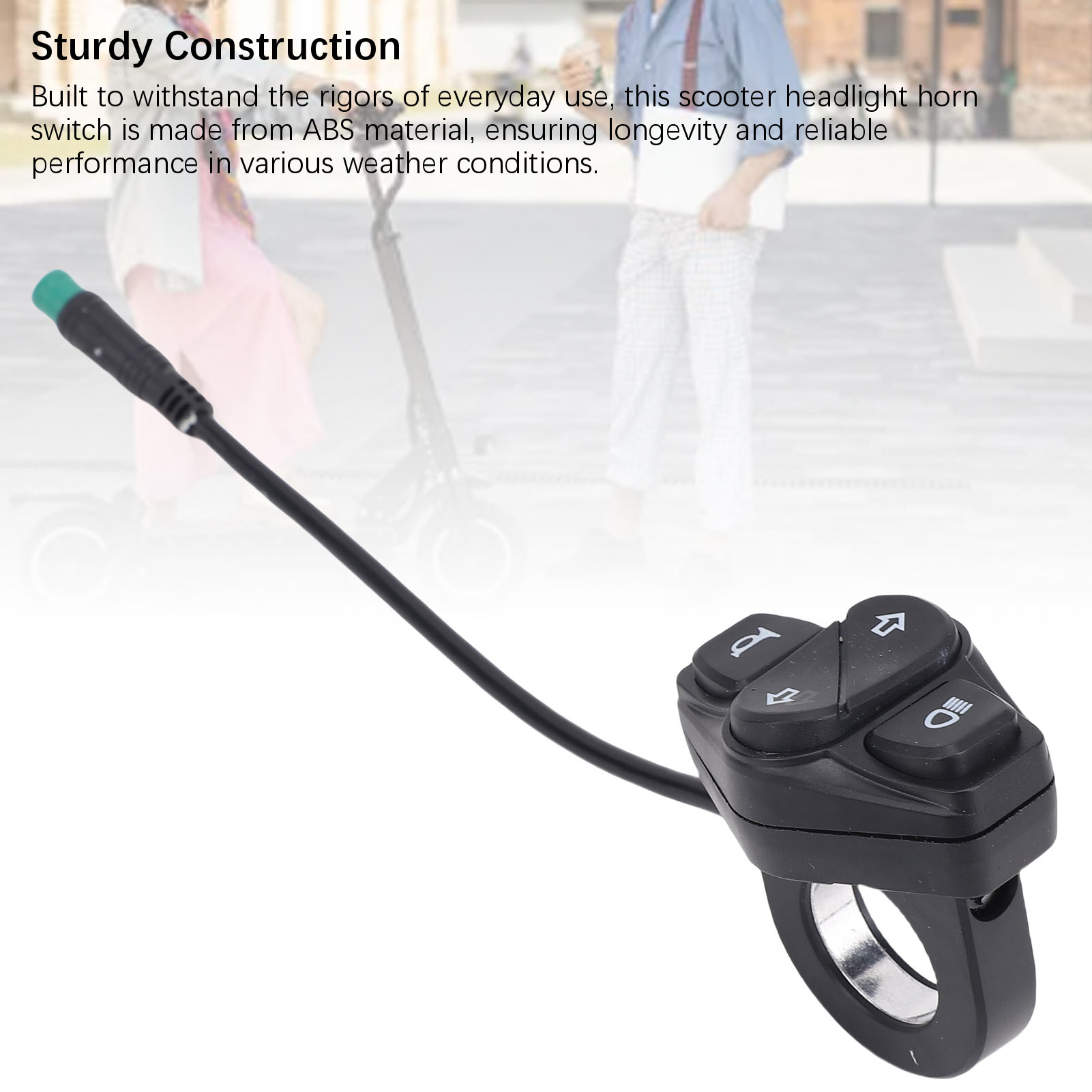 4. Прочная конструкция: этот переключатель звукового сигнала для фар скутера, созданный для того, чтобы выдерживать суровые условия повседневного использования, изготовлен из материала ABS, что обеспечивает долговечность и надежную работу в различных погодных условиях.