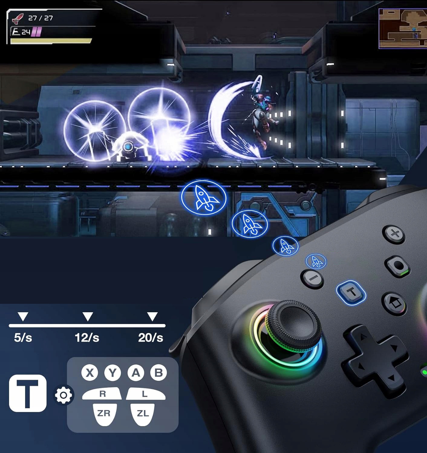 ☑️ Ручка может быть установлена в автоматический режим TURBO или ручной режим TURBO. 3 скорости серийной съемки: 5 фото/с, 12 фото/с, 25 фото/с. Вы также можете настроить кнопки TURBO, A/B/X/Y/L/ZL/R/ZR, для всех кнопок можно установить режим TURBO