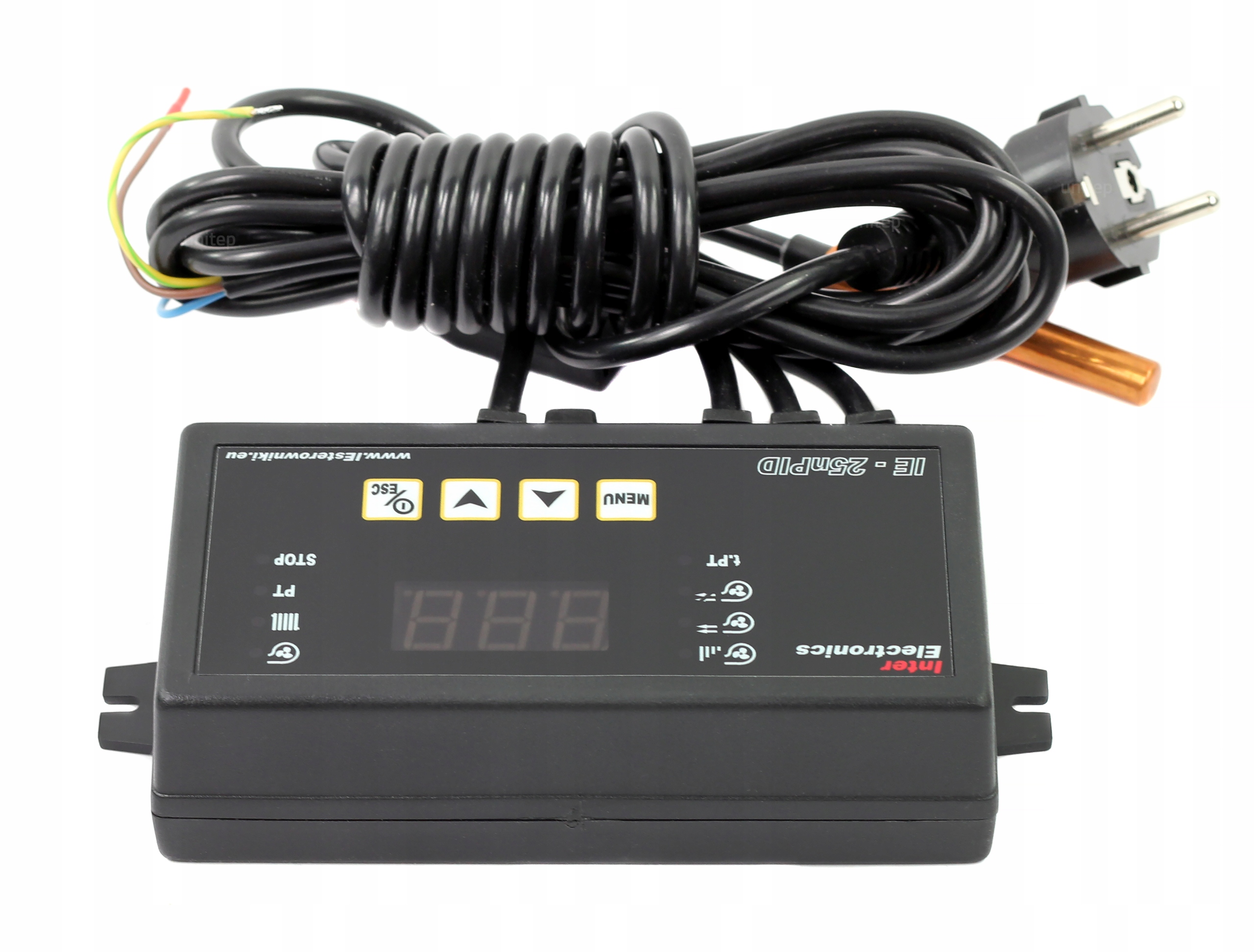 Контроллер котла ИЕ-25н оснащен так называемым алгоритмом управления. PID, который автоматически выбирает мощность вентилятора в зависимости от нагрузки котла. Вентилятор работает с переменным КПД непрерывно, что приводит к более стабильной работе и температуре котла и снижению выбросов выхлопных газов. Работа котла после превышения заданной температуры является нормальным явлением, когда вентилятор работает с минимальным КПД. , «перетаскивая» температуру на значение параметра HYSTERESIS PLUS.