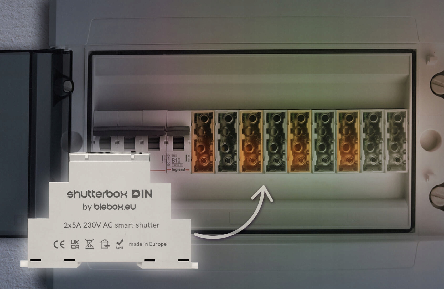 Используйте датчики BleBox для управления «shutterBox DIN» через сеть Wi-Fi без прокладки проводов, например:
