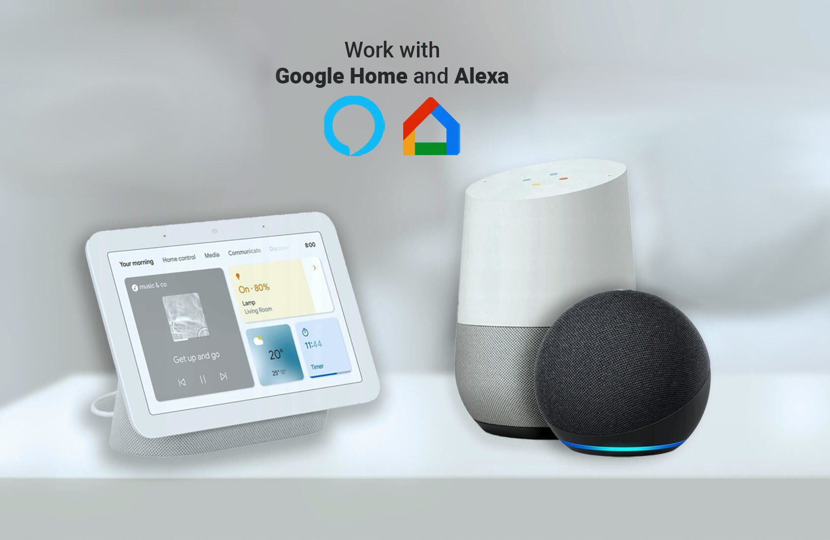 В сочетании с голосовыми помощниками Google Home и Alexa вы можете управлять устройствами с помощью голоса.