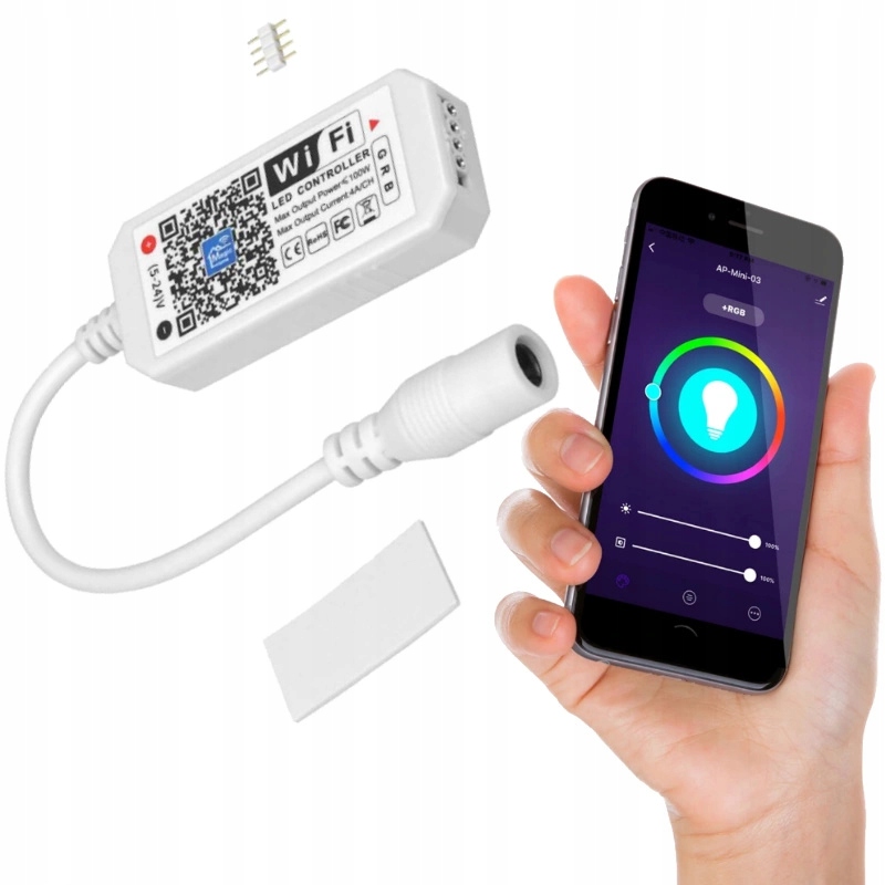 Контроллер RGB LED мощностью 96Вт (8А) — компактное, но мощное устройство, позволяющее управлять светодиодными лентами с помощью WiFi-сигнала. Благодаря этому вы можете свободно регулировать цвет, яркость и световые эффекты светодиодных лент через специальное мобильное приложение. Приложение управления позволяет пользователям удобно регулировать освещение из любой точки дома или даже снаружи. Дополнительные функции, такие как планирование включения и выключения, обеспечивают еще большую автоматизацию. Это идеальное решение для тех, кто ищет простой, но продвинутый способ управления RGB-подсветкой с помощью смартфона.