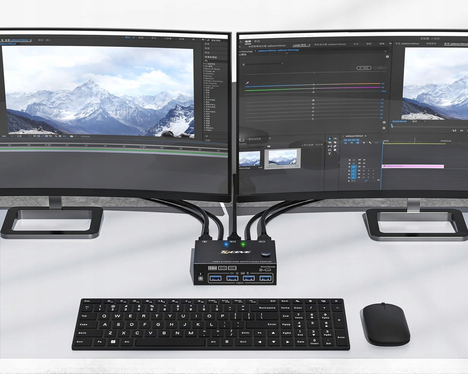 - KVM-переключатель USB3.0 с двойным дисплеем x 1
