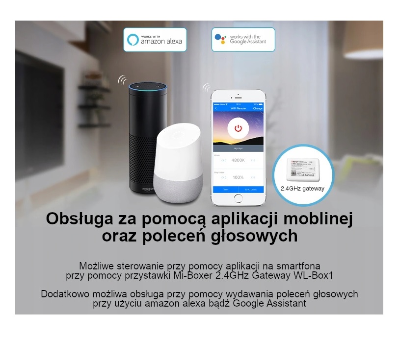 Система MiLight работает с опционально доступным блоком управления Wi-Fi-роутером, где управление приемником осуществляется через приложение на смартфоне/планшете - Android/iOS .