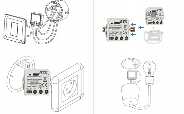 Модуль реле устанавливается в коробку под традиционным выключателем света. После подключения в соответствии со схемой вы сможете управлять включением света удаленно из приложения, традиционно с помощью выключателя или в автоматическом режиме по заранее запрограммированным сценариям.