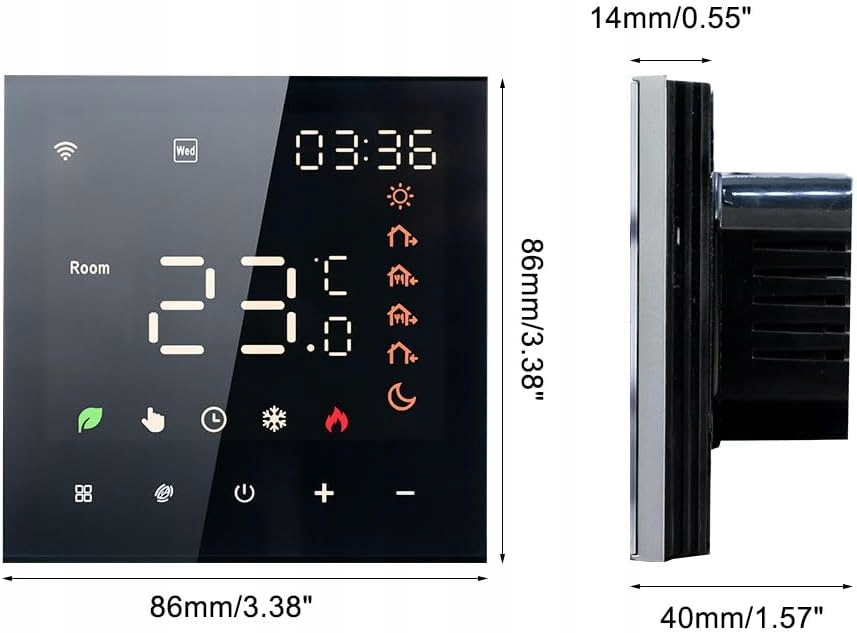 - Точные датчики : встроенный -ин -датчик температуры и дополнительный датчик пола NTC3950 10K (включены) Убедитесь, что точность измерения до ± 0,5 ° C.