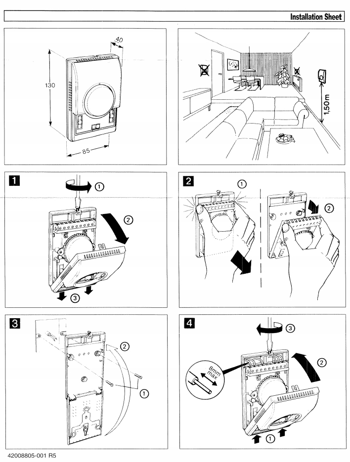 - Гистерезис: +/-0,8°C.
