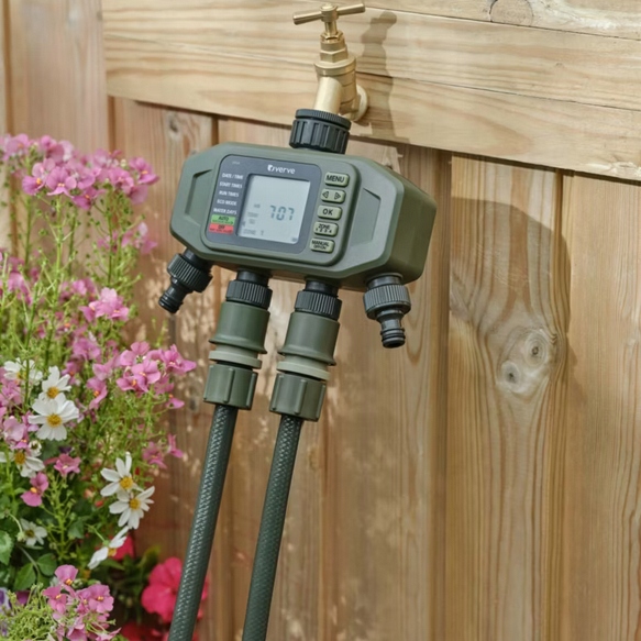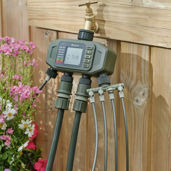 Контроллер ирригации Verve позволяет автоматизировать систему орошения для экономии воды. Доступные настройки частоты полива позволяют адаптироваться к вашим индивидуальным потребностям. Раствор также можно использовать для систем распыления и капельного орошения. Модель имеет 4 выхода – каждый из них является программируемой зоной. Для каждой зоны можно запрограммировать до 4 циклов полива. Пожалуйста, используйте прилагаемые соединения для крана и выберите соответствующий размер крана. 5 функциональных кнопок для удобного программирования. 11 доступных настроек частоты полива. Время полива от 1 мин до 360 мин за цикл. Большой, читаемый ЖК-дисплей. Когда изделие не используется, его рекомендуется хранить в прохладном, защищенном от мороза и прямых солнечных лучей месте.