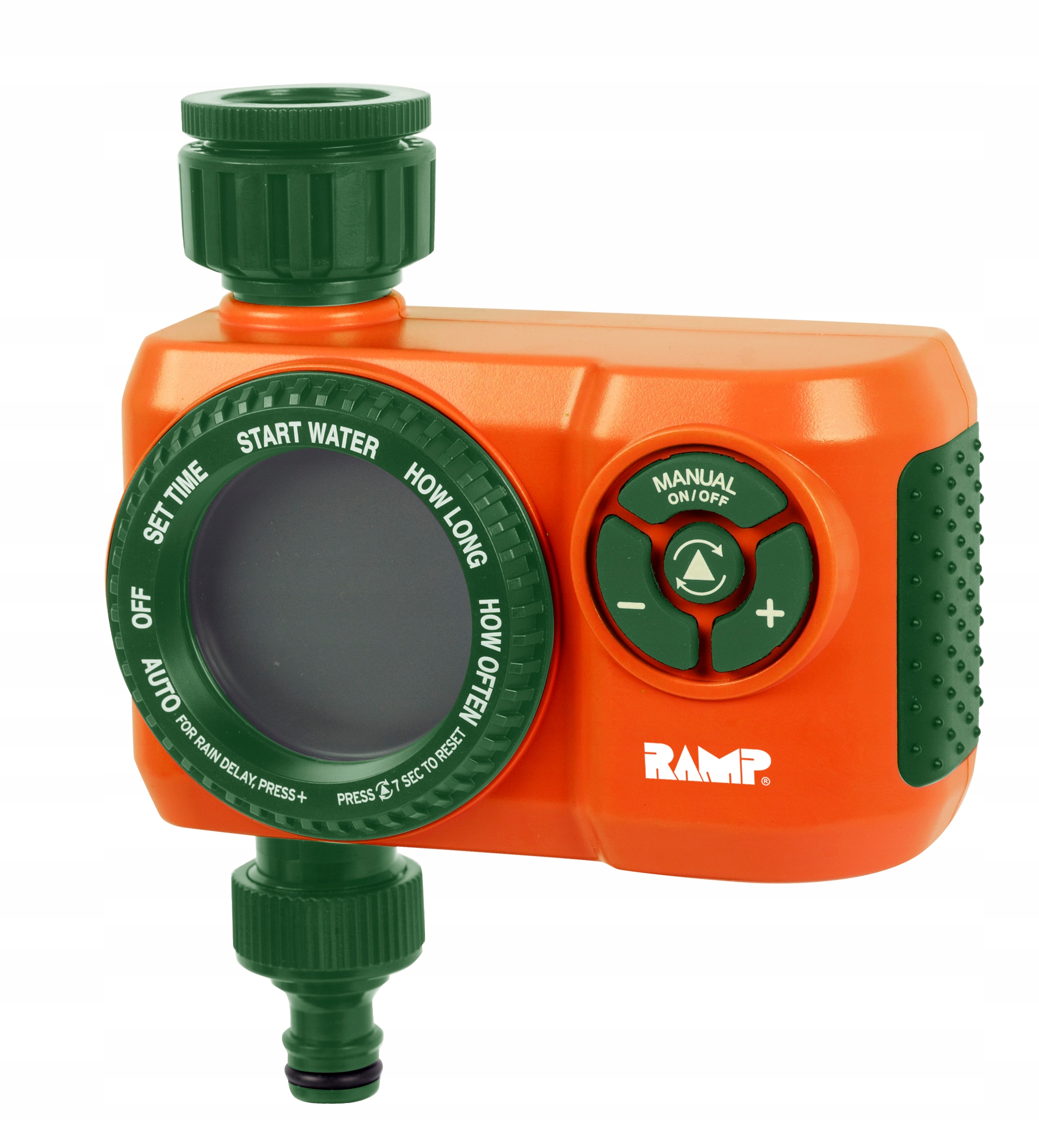 Контроллер оснащен большим и четким дисплеем. Имеет возможность установки времени начала полива, установки продолжительности полива, установки частоты полива и автоматического режима.
