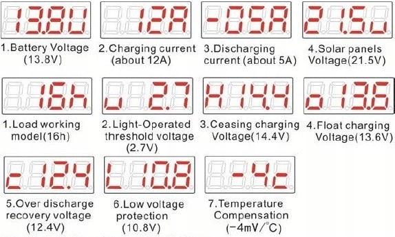 После подключения контроллера к батареям тип батареи будет автоматически установлен на 12/24 В. Если используются другие, вы можете установить другие (кнопка SET) и выбрать тип батарей в течение 3 секунд после подключения).