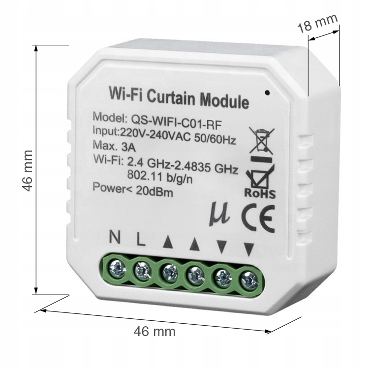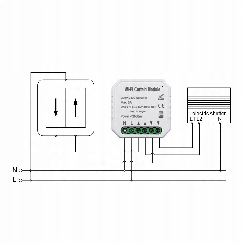 Модуль реле устанавливается в коробку под традиционный выключатель. После установки вы сможете управлять жалюзи удаленно из приложения, традиционно с помощью переключателя или автоматически по заранее запрограммированным сценариям.