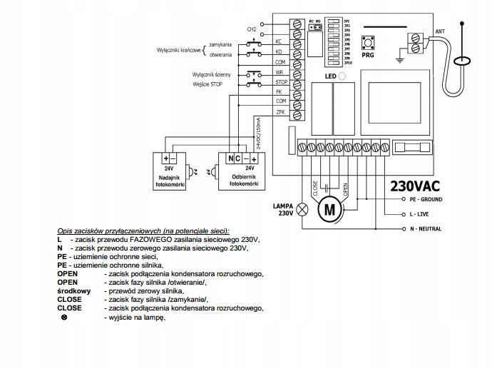 драйвер, 230 В плюсная панель управления с застроенным пилотным приемником с возможностью соединения предупреждающей лампы и фотоэлементов с пультом дистанционного управления U2T в наборе. h1>