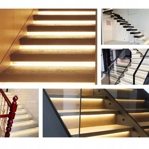 Контроллер обеспечивает плавное каскадное освещение лестничного освещения, размещенное на на ступеньках или рядом со ступенями, чаще всего это светодиодные ленты – светодиодные ленты, размещенные в ступенях, или светодиодные светильники, размещенные в стене рядом со ступенями, или другие виды лестничного освещения.