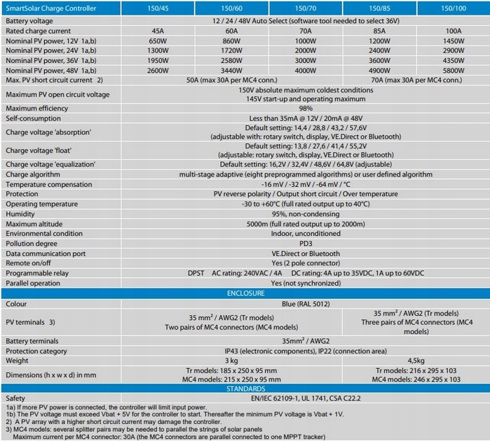 - Контроллеры заряда SmartSolar MPPT доступны с винтовыми клеммами или солнечными разъемами MC4.