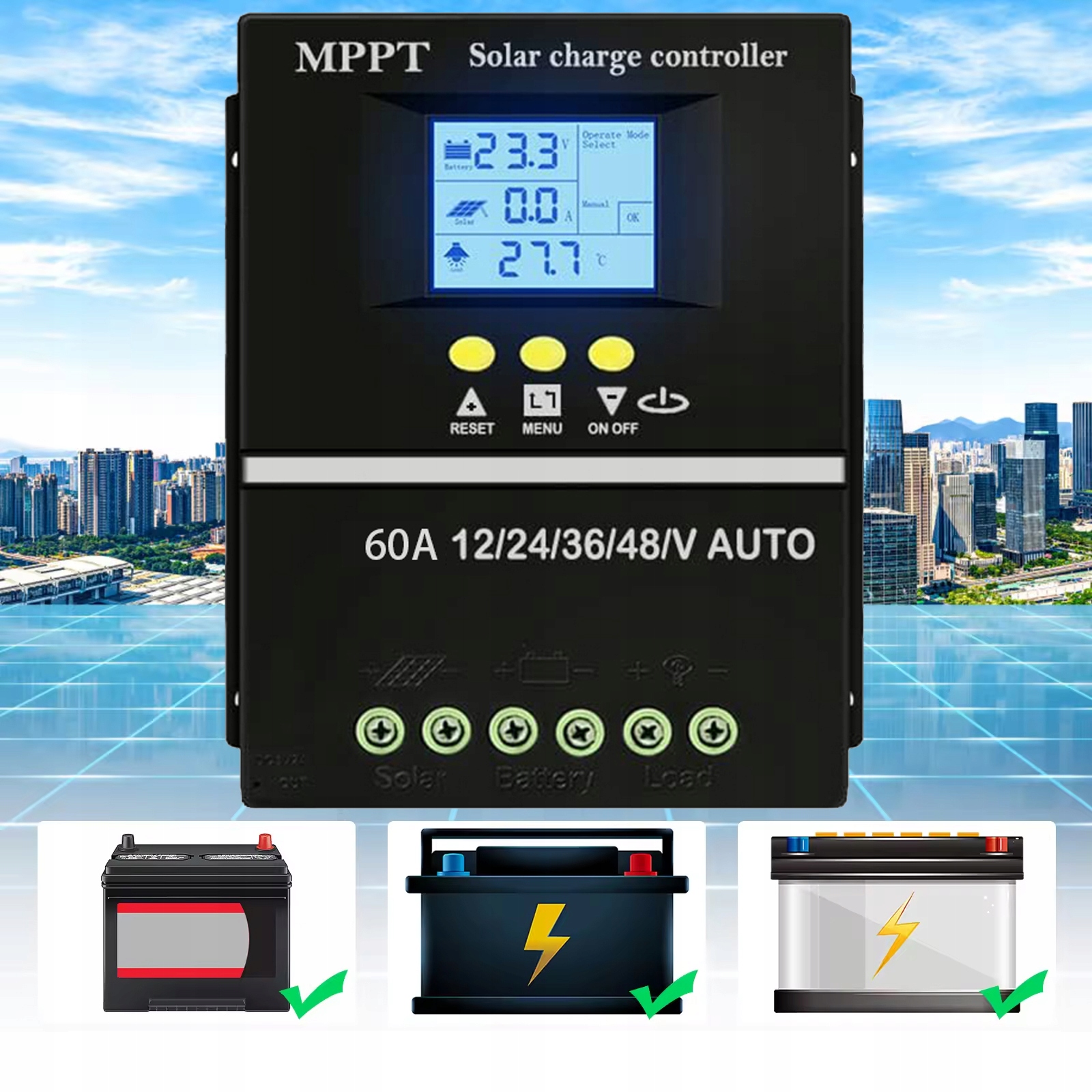 КОНТРОЛЛЕР СОЛНЕЧНОЙ ЗАРЯДКИ 12В/24В/36В/48В ЖК-ПАНЕЛЬ 60А MPPT