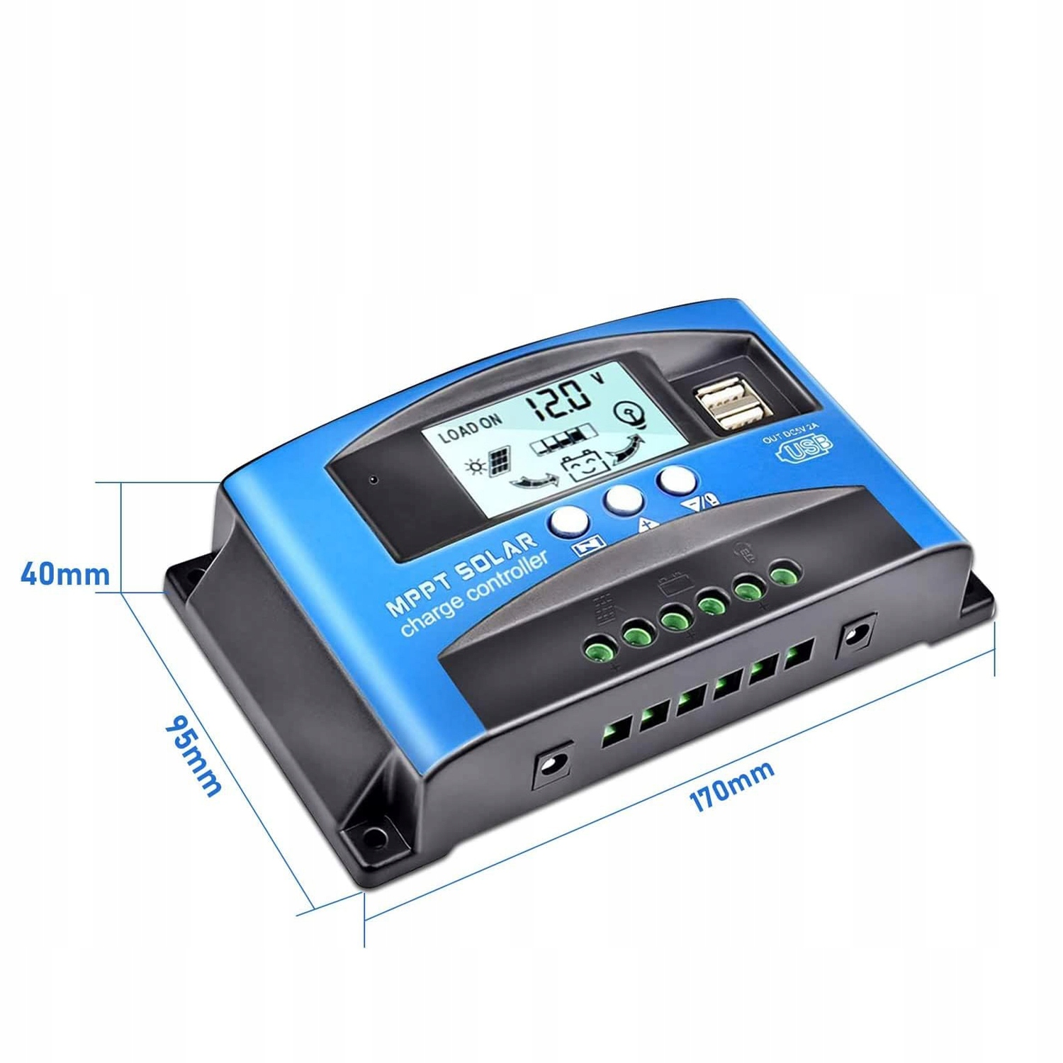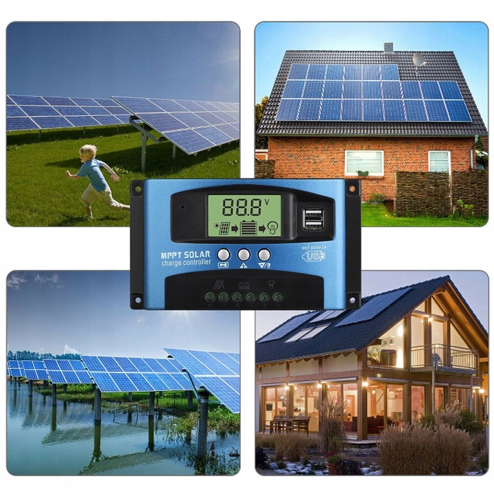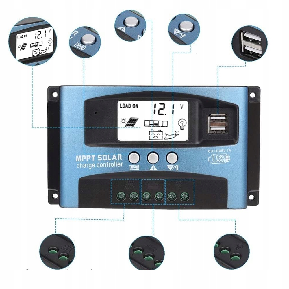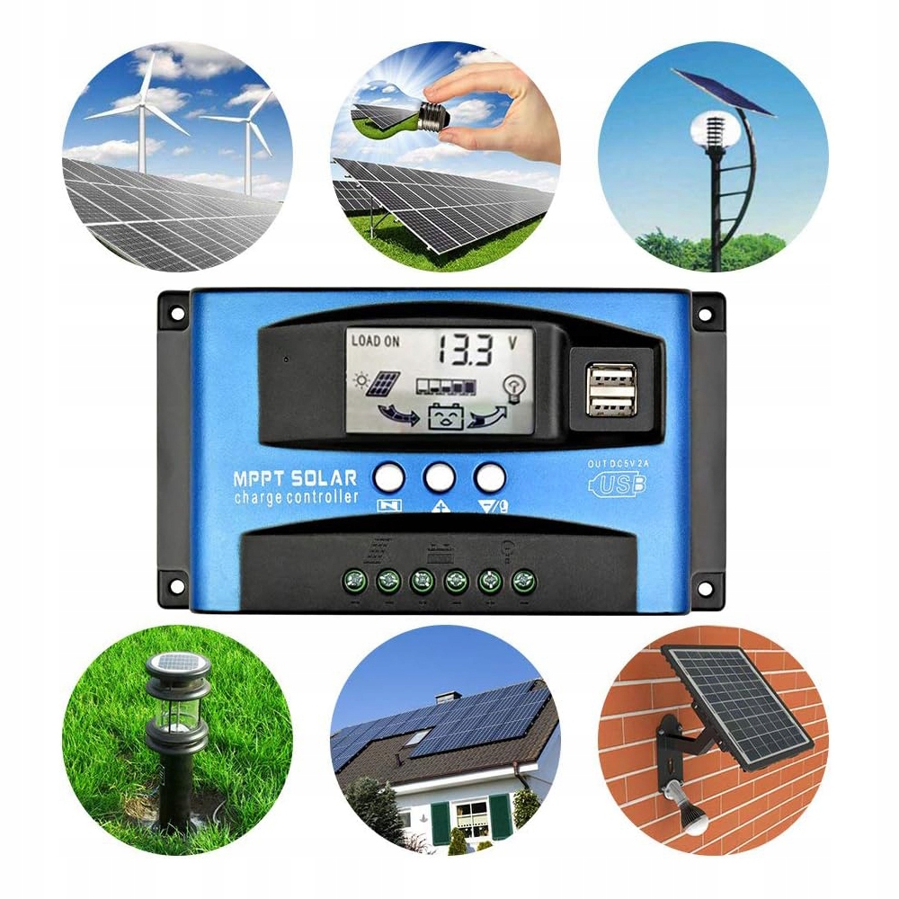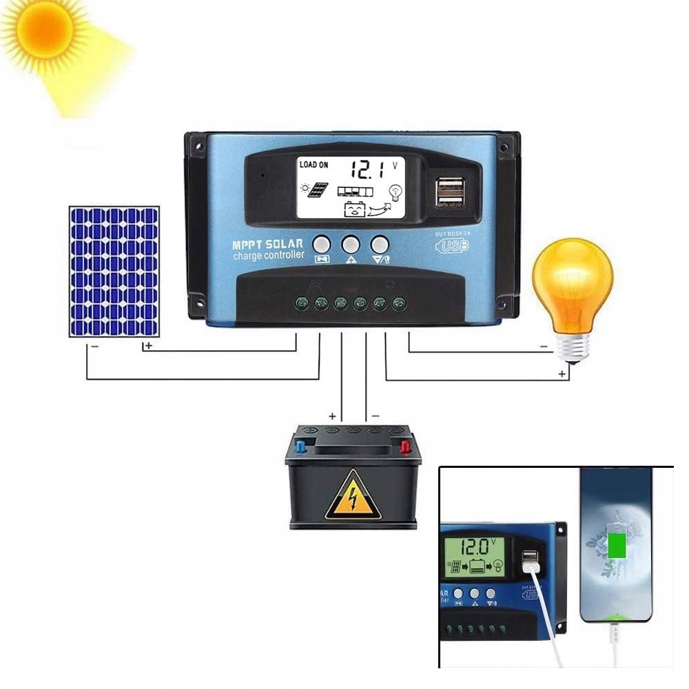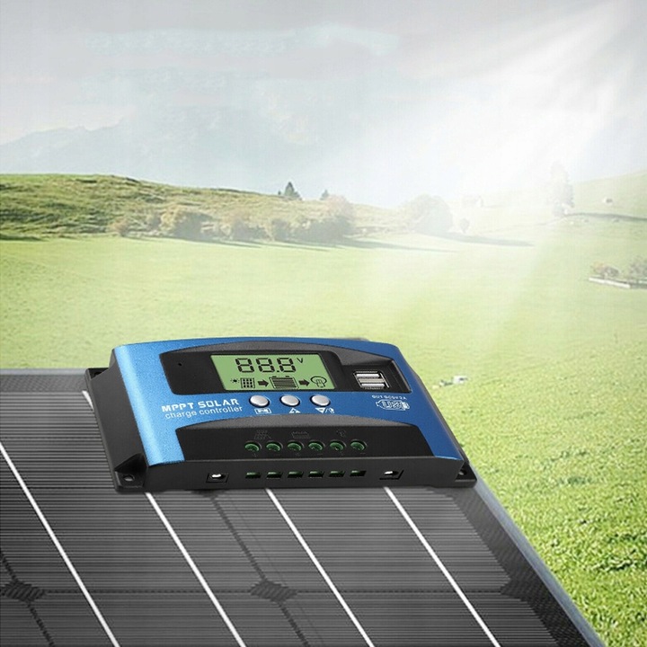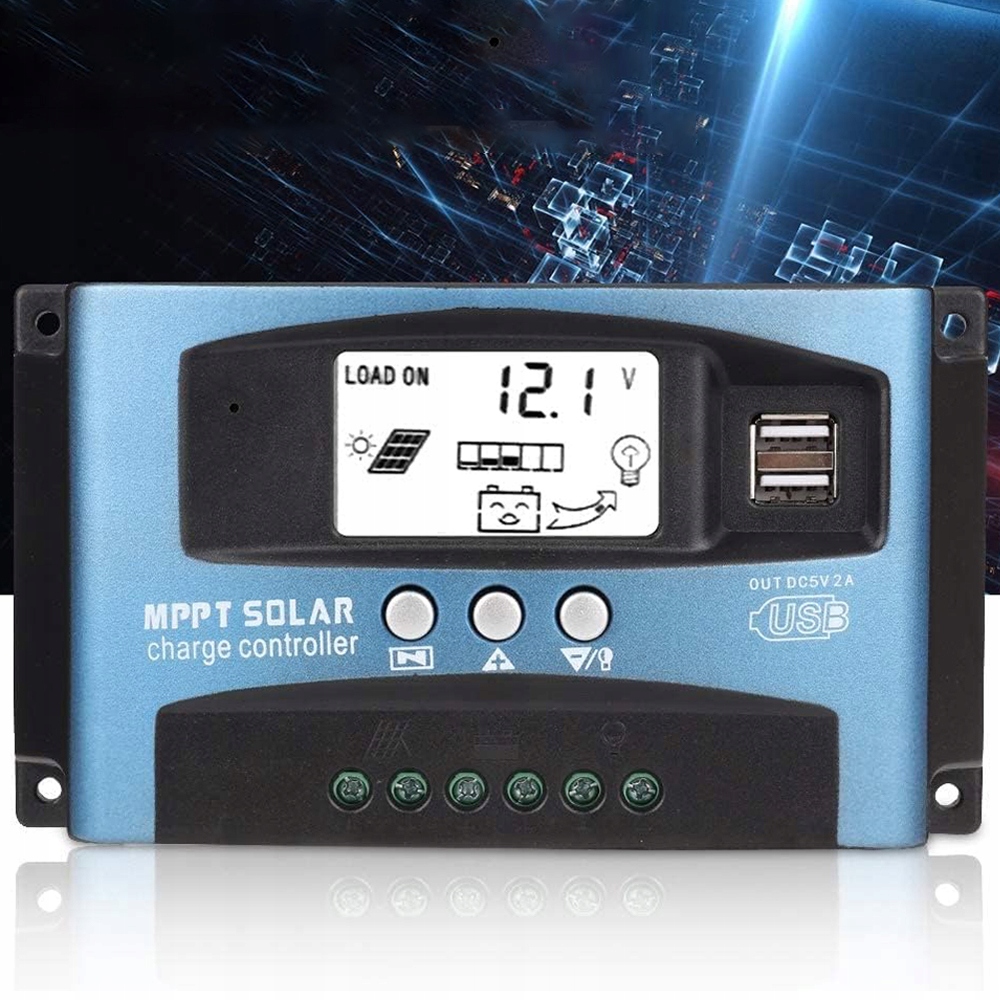 КОНТРОЛЛЕР СОЛНЕЧНОЙ ЗАРЯДКИ С ЖК-ПАНЕЛЬЮ 12 В 24 В 100 А 2xUSB