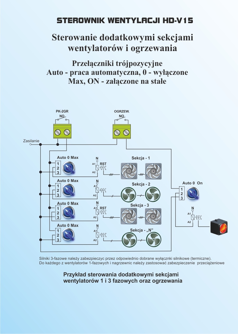 Контроллер имеет программируемую функцию, так называемую «Проветривание», позволяющее циклически включать вентиляторы ниже заданного порога температуры.