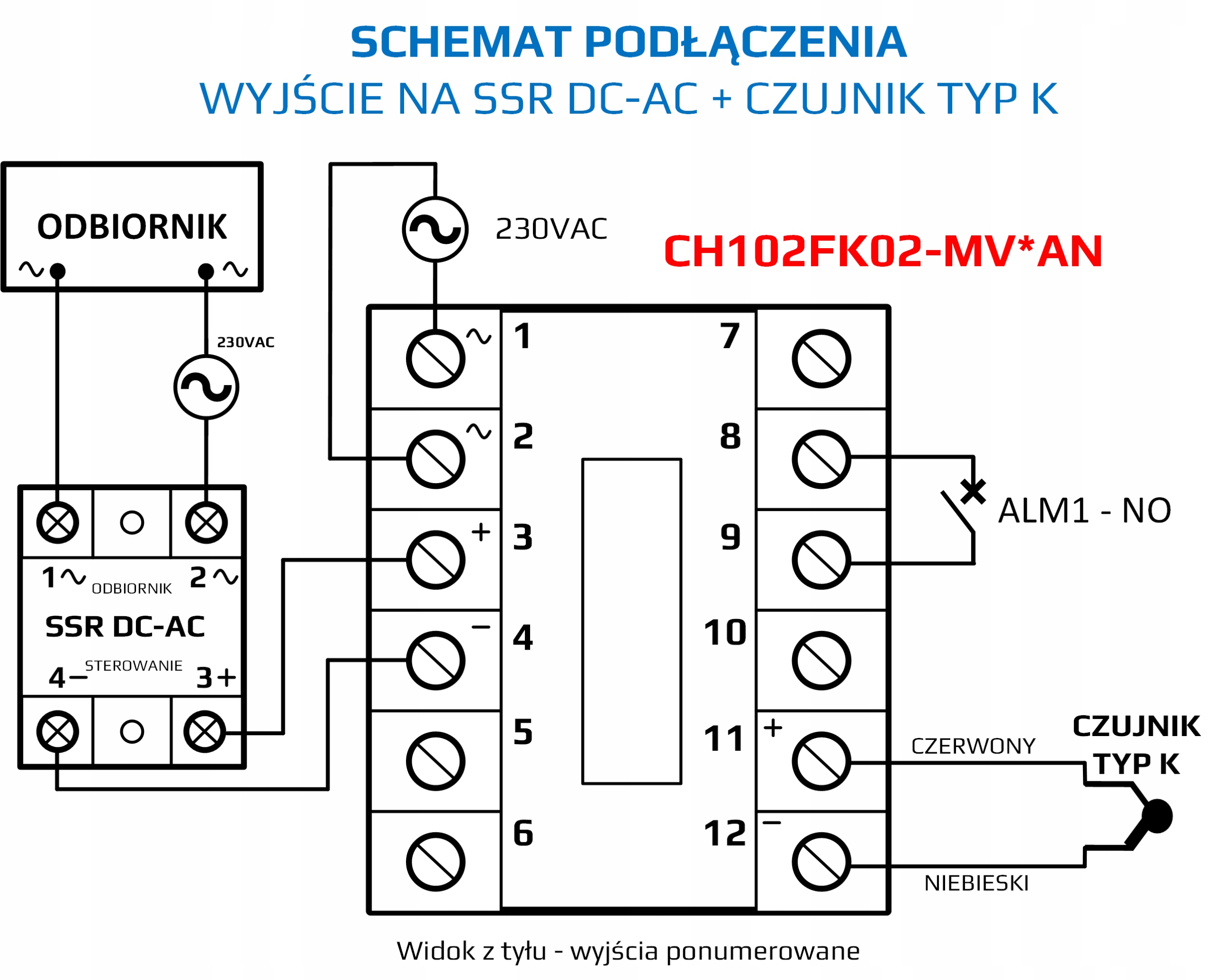 exit к реле SSR -DC -AC b>, управляемому непосредственно с регулятора 12VDC и подключенного датчика K K. SSR: