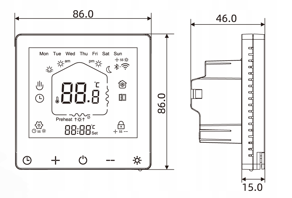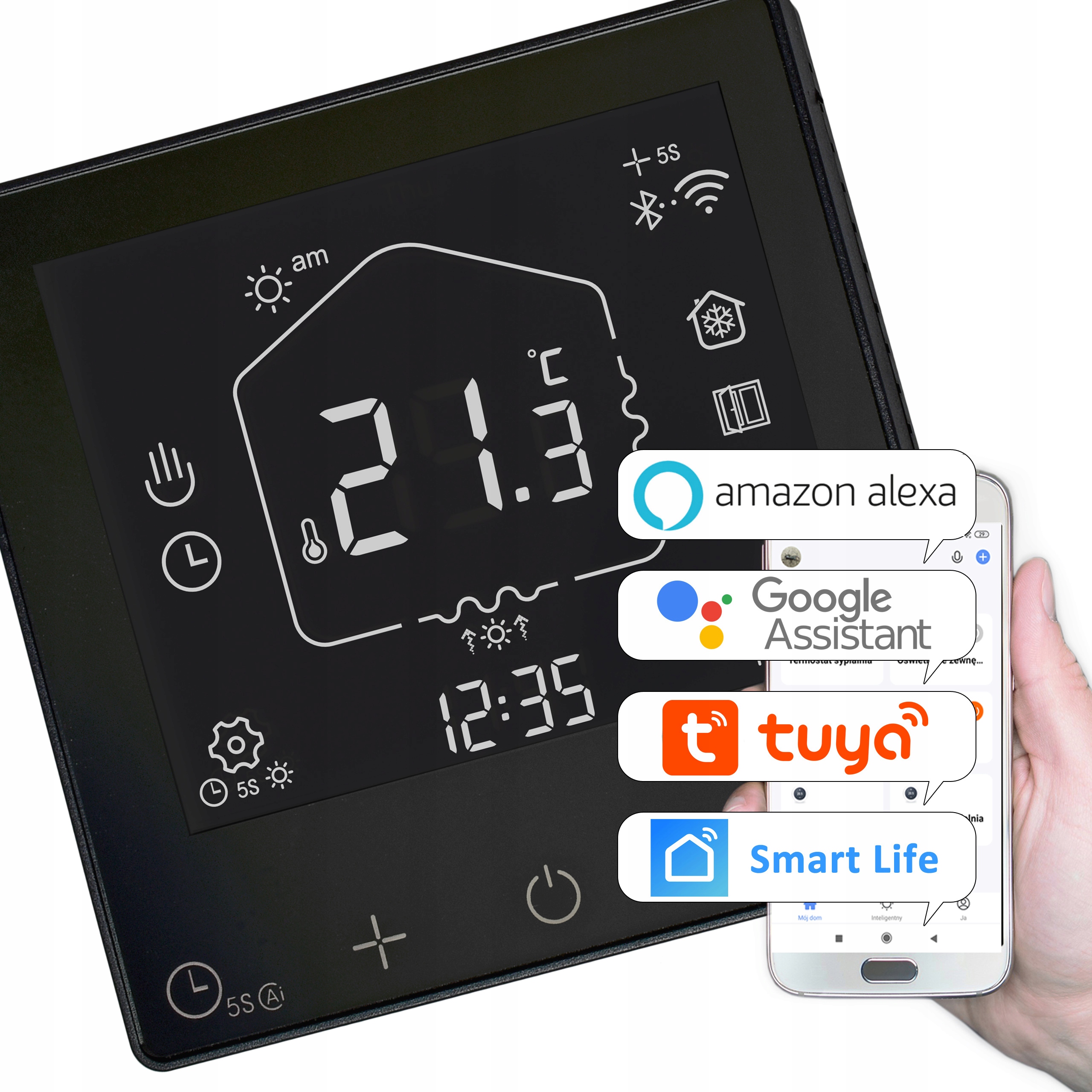 Термостат с функцией Wi-Fi позволяет контролировать температуру с помощью телефона или планшета с устройств на базе Android или iOS, в том числе с помощью Приложение SMART LIFE, TUYA и другие.