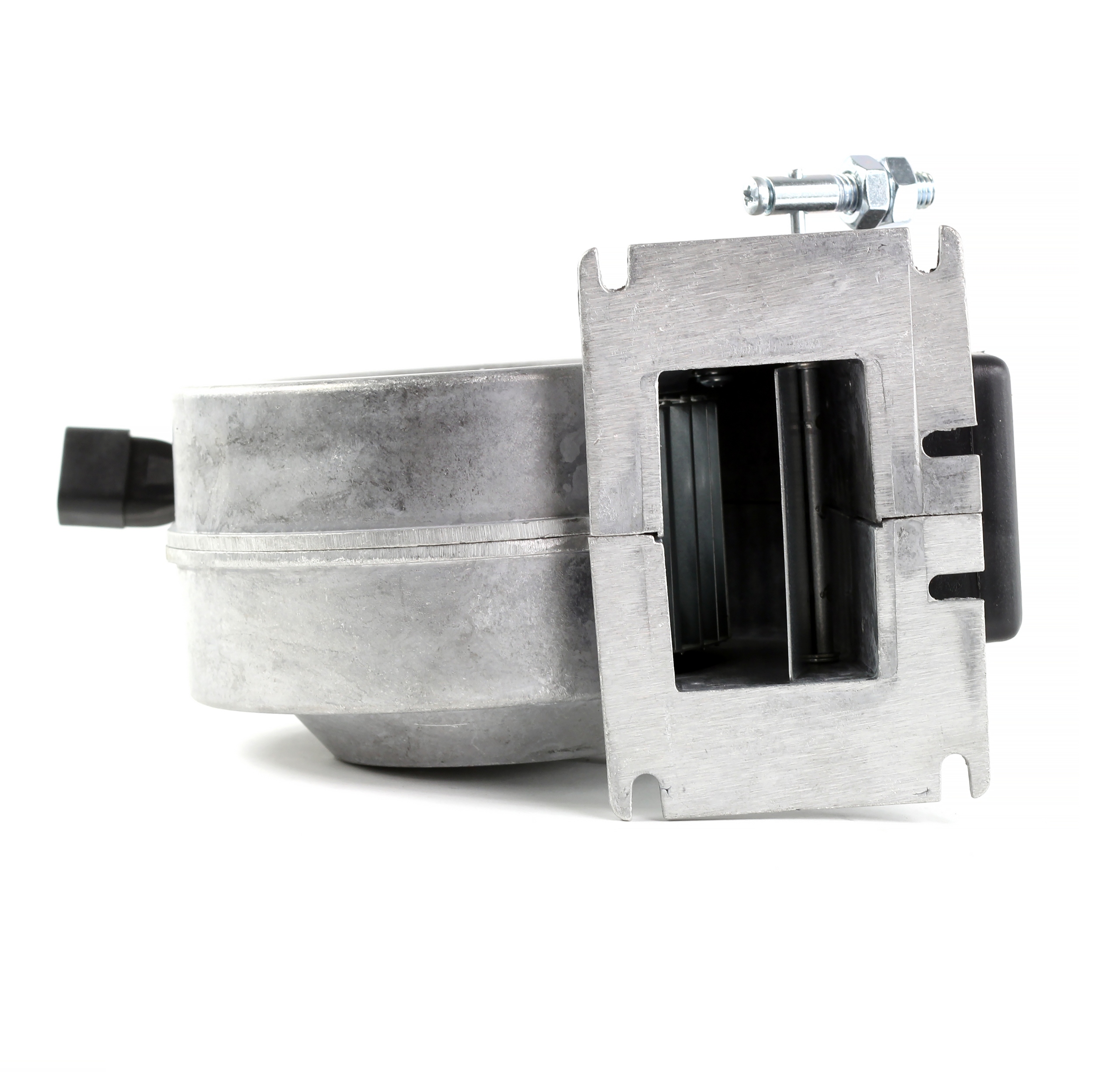 Вентилятор оснащен воздушной заслонкой (заслонкой), которая предотвращает протягивание воздуха через крыльчатку, когда вентилятор не работает. Это помогает поддерживать более стабильную температуру в котле. Регулировка заслонки осуществляется с помощью рычага с двумя гайками. Описание регулировки можно найти в руководстве пользователя.