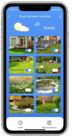 изображения каждой зоны -контроллер SH-6-WiFi был разработан для простоты использования. Планирование на основе зон позволяет независимо планировать работу каждого клапана, что означает, что вам больше не нужно объяснять пользователям «числа каждой зоны». Каждая ирригационная зона может быть отмечена любой фотографией, которая облегчает ее идентификацию.