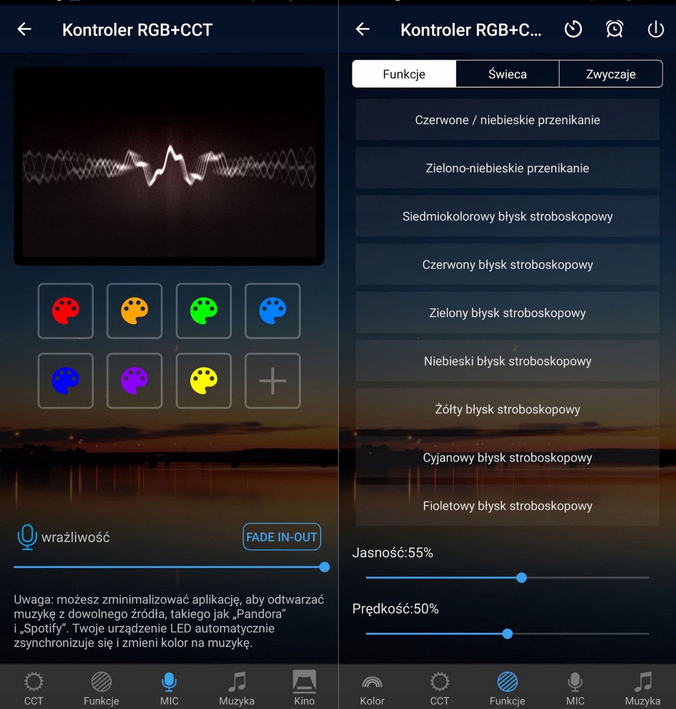 Используйте встроенный микрофон на телефоне. Меняйте цвет, яркость и даже чувствительность и чувствительность получаемых звуковых стимулов!