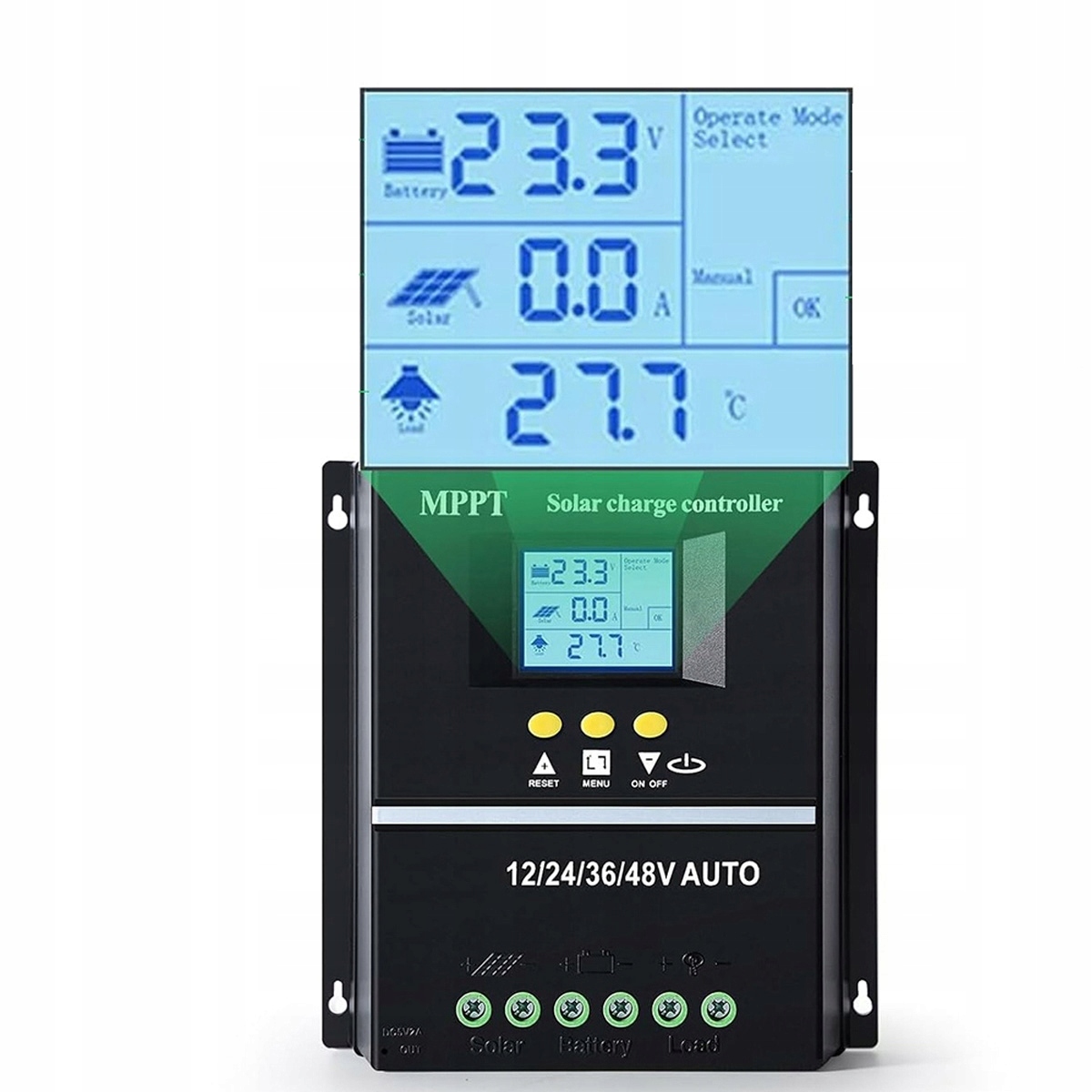✅ ЖК -дисплей Live Live: Большой ЖК -дисплей, отображение состояния батареи, эксплуатацию солнечной панели, дисплей управления режимом, состояние загрузки и отображение всех параметров, отображение нормальных и ошибки. Ручное управление, режим управления временем и тестовый режим (режим тестирования предназначен только для использования на заводских тестах).