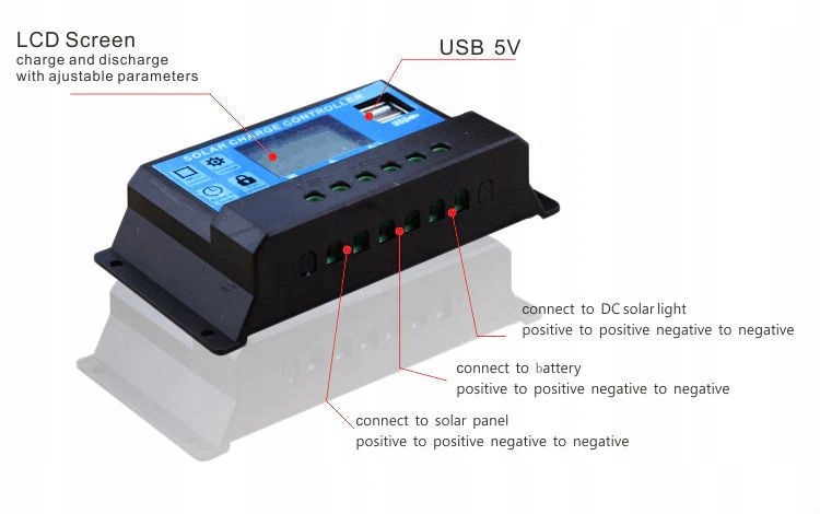 Контроллер, предназначенный для систем на 12 и 24 В, построен на микроконтроллере на основе технологии ШИМ. Автоматически переключается между 12 В и 24 В при подключении к батареям. Он оснащен большим, легко читаемым ЖК-дисплеем, на котором отображаются многие рабочие параметры, в том числе: зарядный ток, что неочевидно в случае с более простыми устройствами.