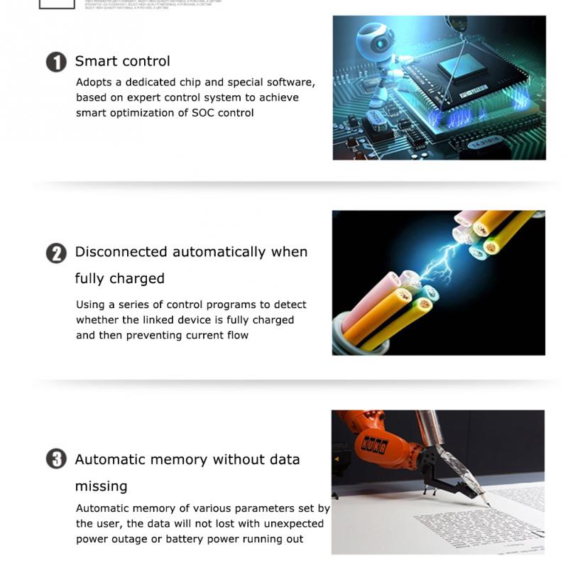Выбрав функциональную кнопку, вы можете вызвать выбранный параметр, изменить его с помощью кнопок со стрелками и подтвердить его. Есть возможность изменить тип аккумулятора, напряжение зарядки и разрядки и время включения питания подключенного приемника в темное время суток.