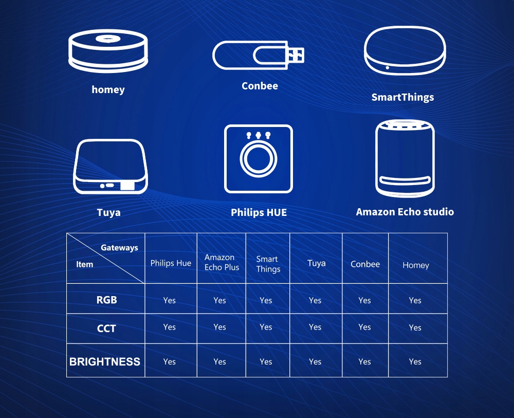 - Широкая совместимость — контроллер совместим с большинством популярных шлюзов ZigBee 3.0: Homey, Conbee, SmartThings, TUYA, Philips HUE, Amazon Echo< /li>