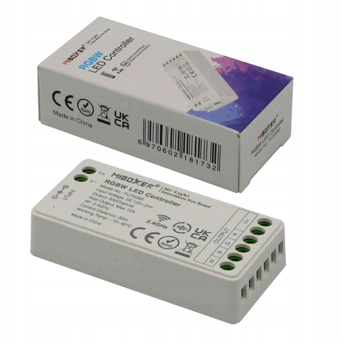 Контроллер работает с сенсорным пультом дистанционного управления, предназначенным для дистанционного изменения цвета и режима освещения в светодиодных лентах RGB и RGBW. Радиоконтроллер не требует наведения непосредственно на приемник сигнала, его можно полностью встроить, например, за гипсокартонную стену. Конструкция контроллера позволяет подключать светодиодную ленту без необходимости пайки.