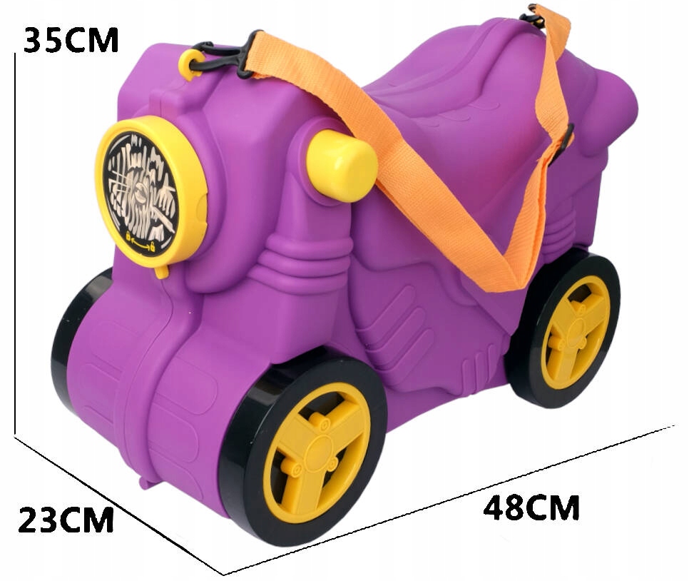 Чифт функциональный и вместительный . Красивые цвета и оригинальная форма, безусловно, привлекут внимание детей. Сделано из прочного и высококачественного пластика. безопасные защелки с замком позволяют закрыть чемодан и хранить игрушки или другие сокровища внутри. Большие и сильные колеса облегчают для ребенка перемещение на чемодан