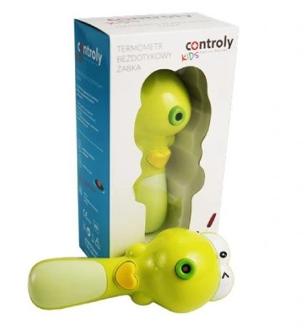 Бесконтактный термометр Żabka Controly Kids — современный электронный инфракрасный термометр, предназначенный для измерения температуры у ребенка (на лбу). Он позволяет точно измерить температуру тела за 1 секунду. Запоминает последние 64 измерения. Термометр безопасен в использовании – никакой ртути!