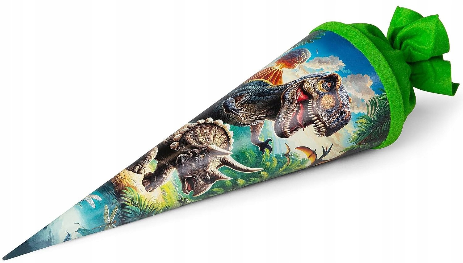 goldbuch 93 157, конус-вулкан, школьный конус с мотивом динозавра, лакированный картон, подарочная упаковка с зеленой фетровой застежкой (без ленты), круглый конус для конфет.