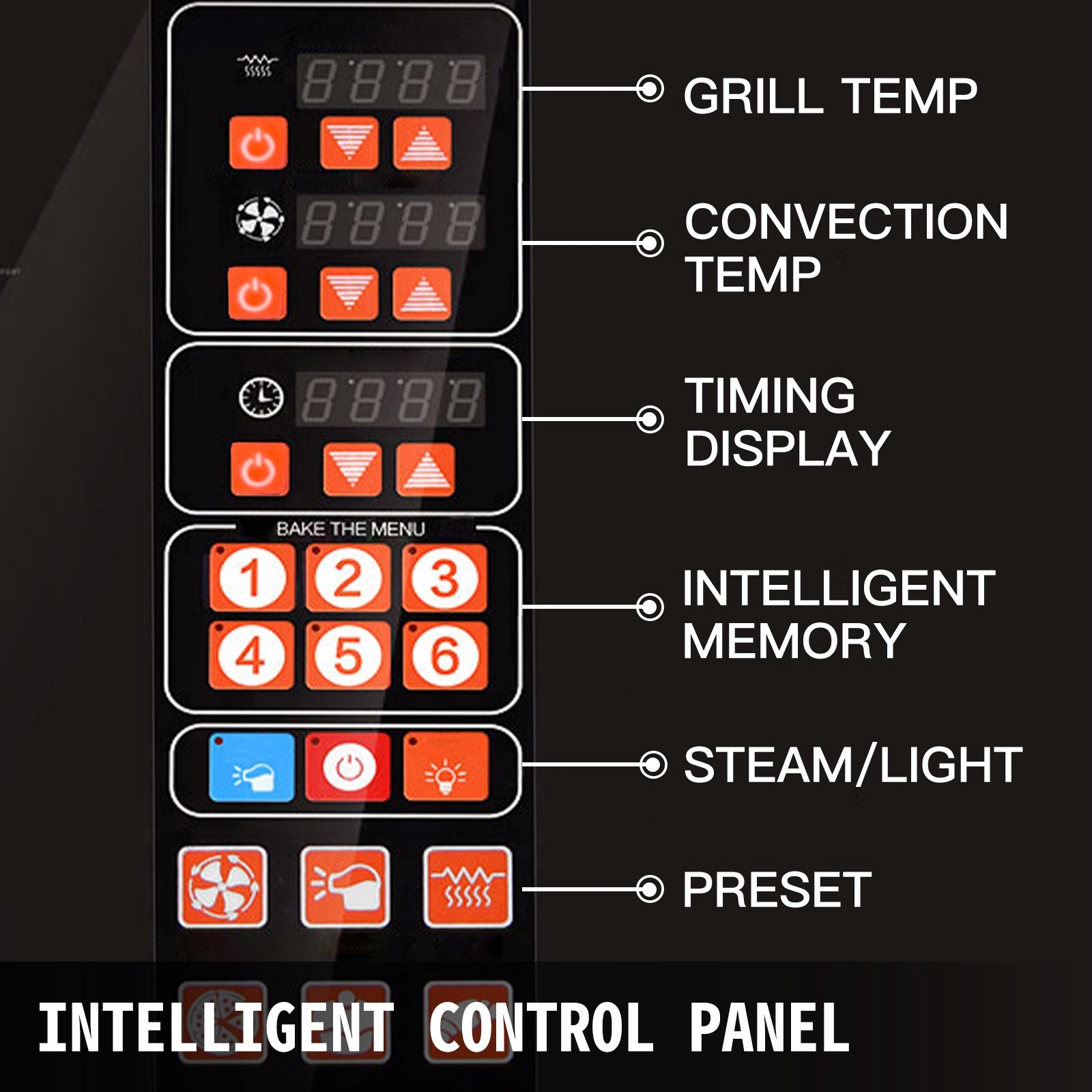 Точный контроль температуры и времени с помощью микрокомпьютера. Интеллектуальная панель с 6 программируемыми кнопками для удобной выпечки в одно касание.