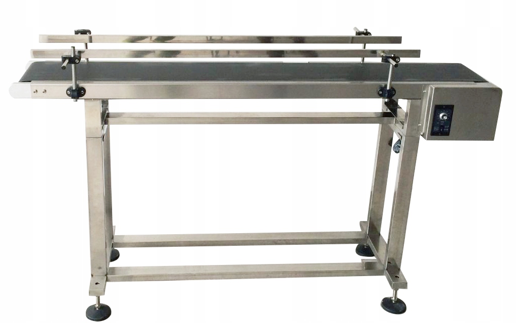Конвейерная лента имеет регулируемые упоры, предотвращающие падение продукта с конвейера. Ограничители можно сузить до «нуля». Вы также можете использовать их для размещения изделия в определенном месте.