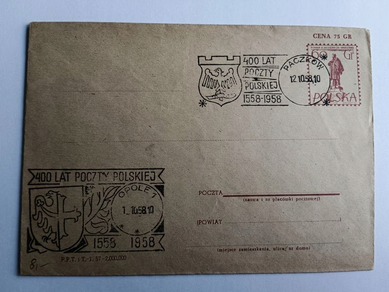КОНВЕРТ 400 РОКІВ ПОЛЬСЬКОЇ ПОШТОВОЇ МАРКИ 1958 R 21472 X