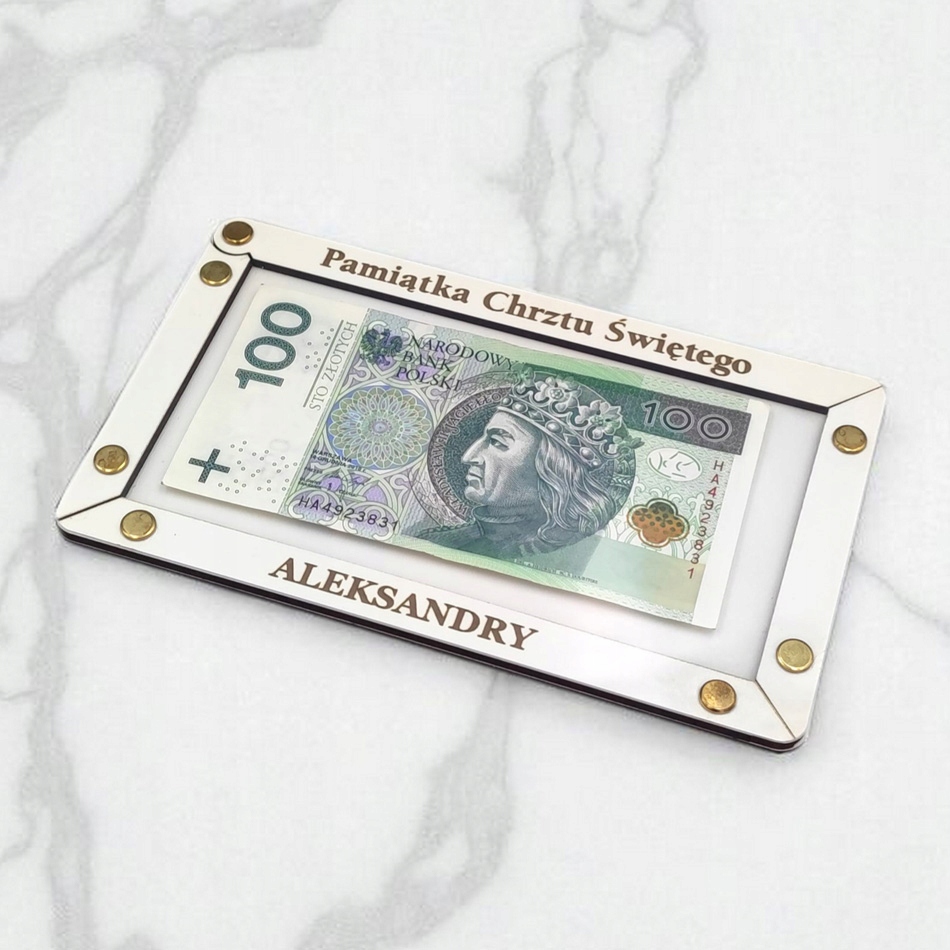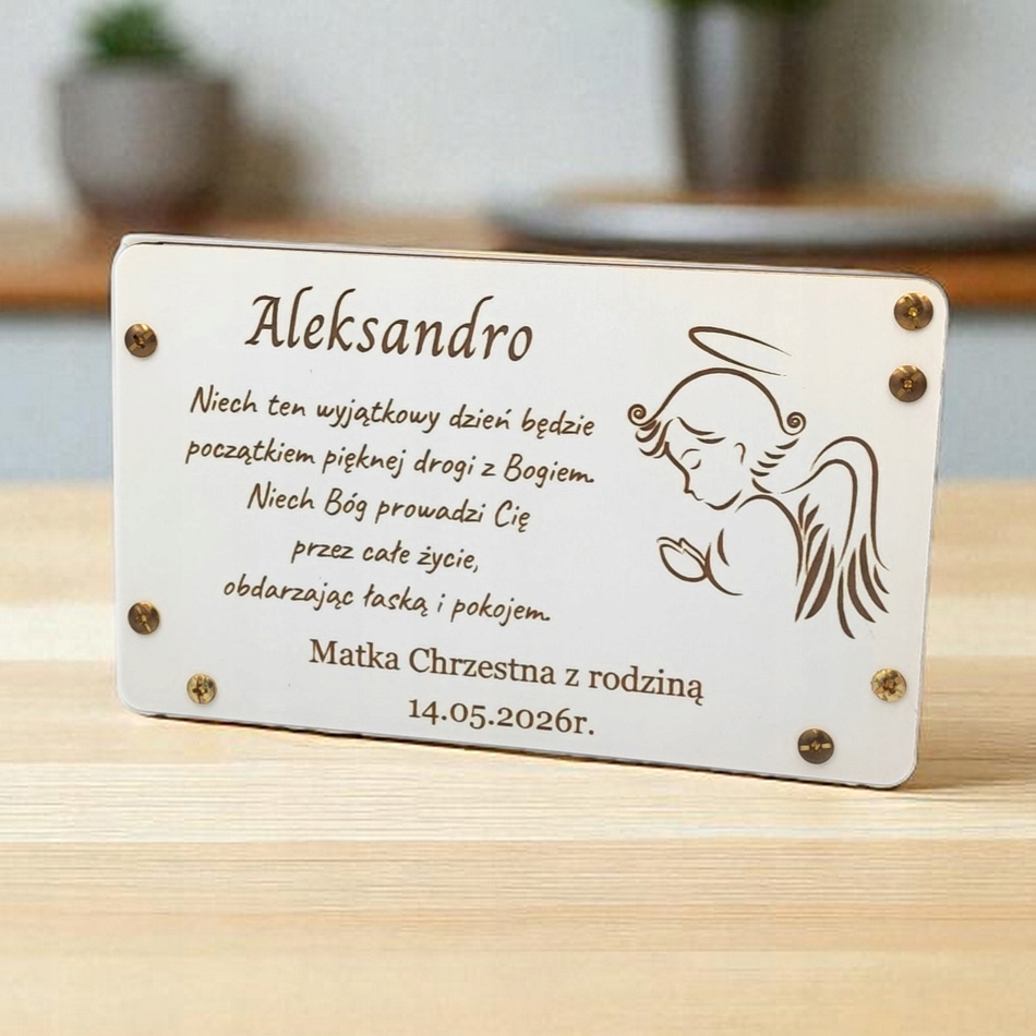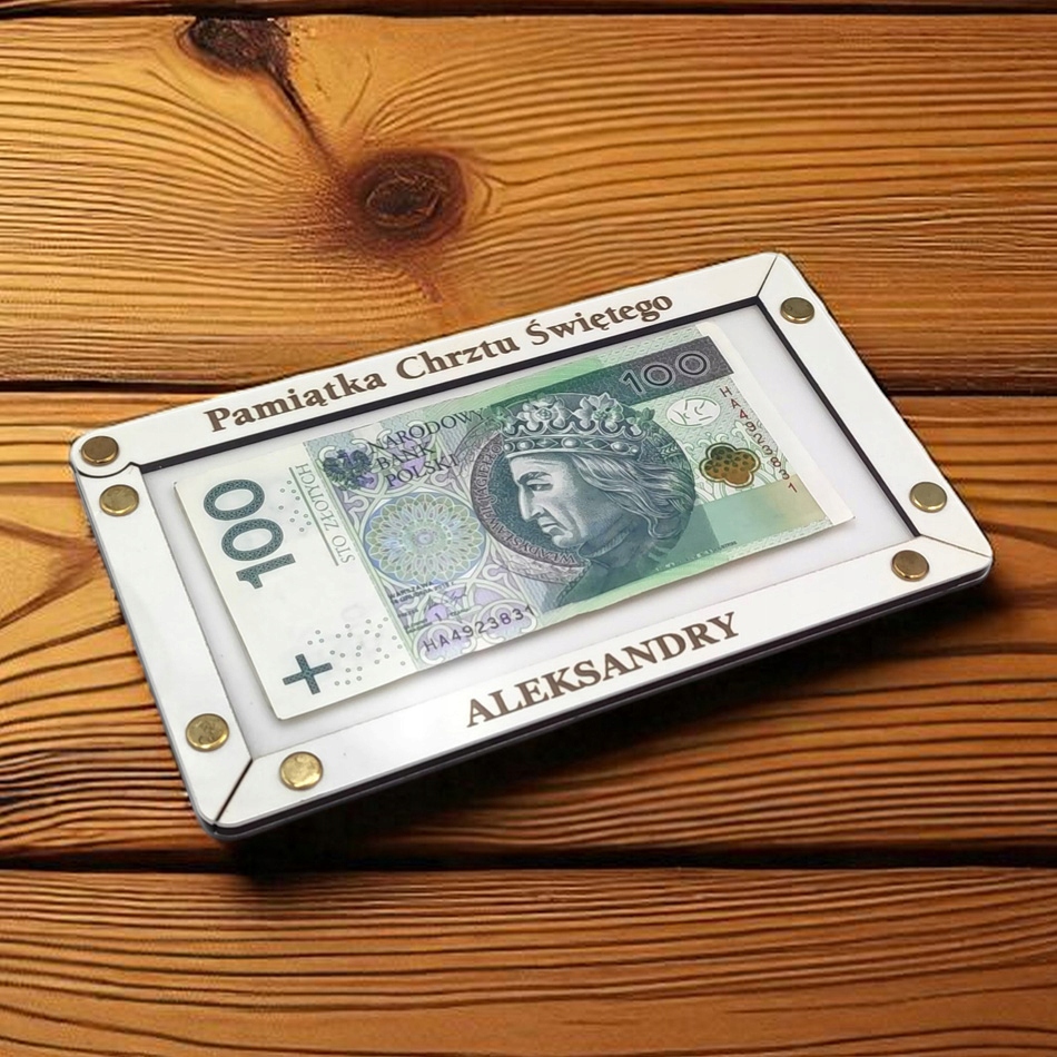 graved конверт за деньги по случаю крещения - это элегантный и стильный способ подарить денежный подарок. Конверт изготовлен из белого HDF, скрученной «золотистыми» заклепками, тонко украшенными персонализированной гравировкой , которая добавляет ее уникальный персонаж . персонализация , желания в задней части конверта делают его не только функциональным, но и сентиментальным подаром . Идеально подходит для передачи банкнот, конверт с гравировкой станет красивой souvenir с этого важного дня. Элегантный дизайн и персонализация Сделайте его идеальным подаром , который сочетает в себе функциональность с сентиментальным акцентом , в то же время будучи прекрасным сувениром в течение многих лет.